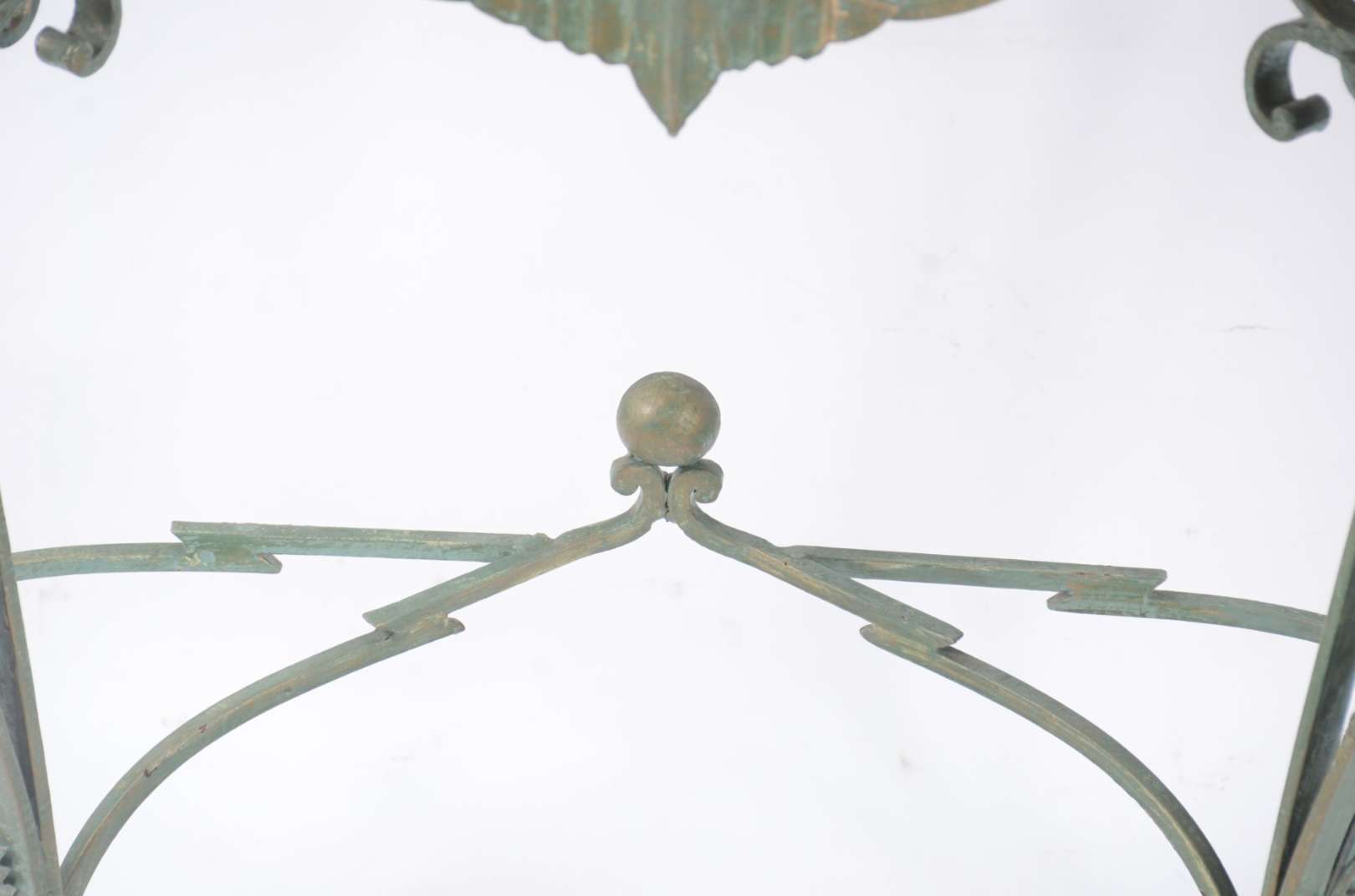 Mesa de centro de madeira nobre, tampo de vidro, apoio em quatro colunas torneadas ligadas por traves recortadas.