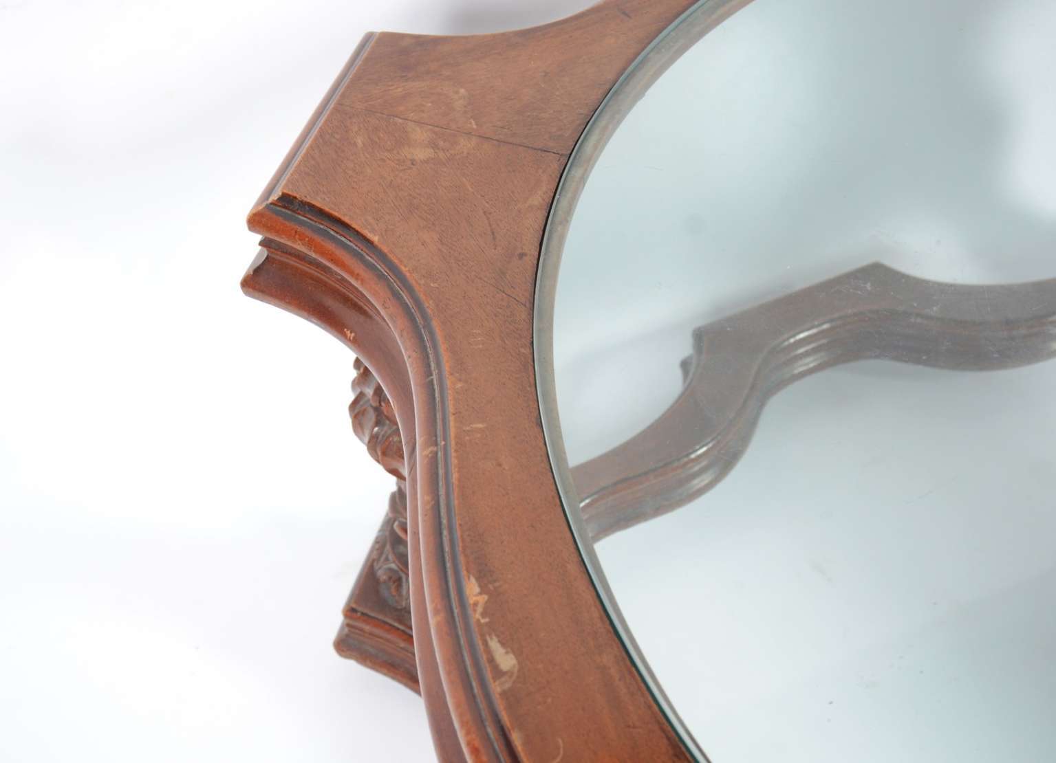Dunquerque de madeira nobre com duas portas espelhadas e uma gaveta. Prateleiras internas. Desgastes nos fechos inter...