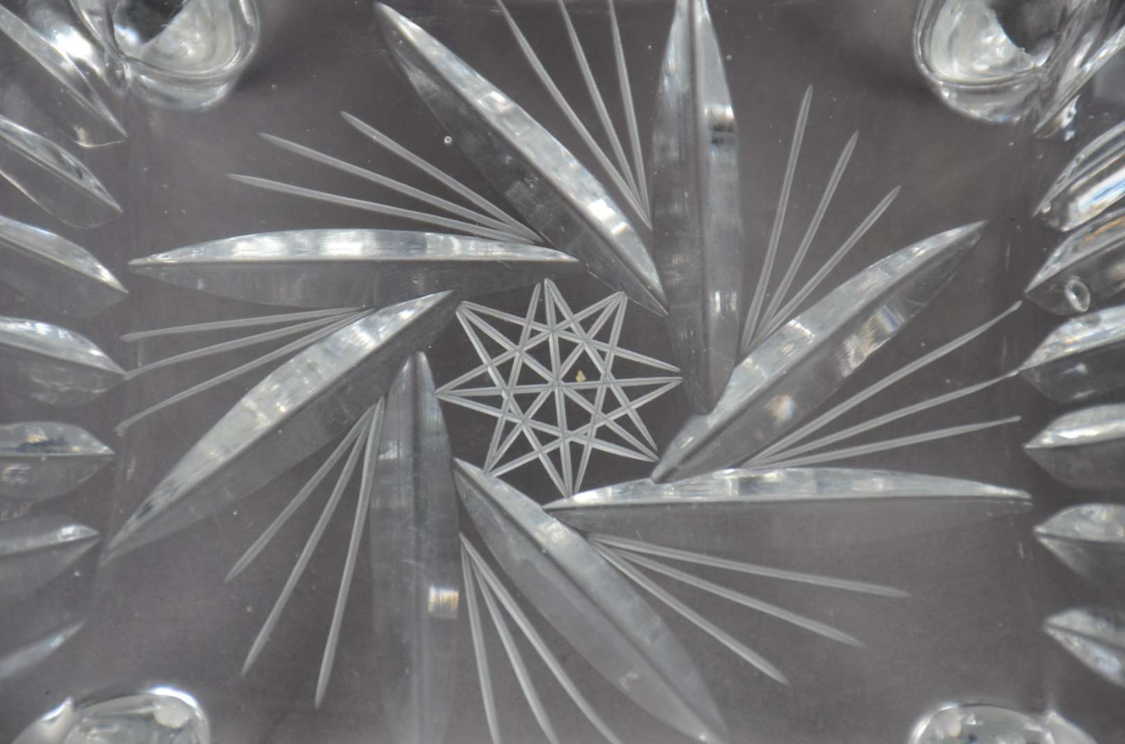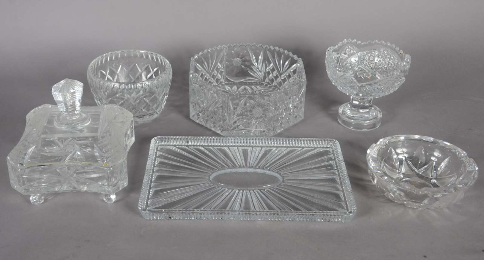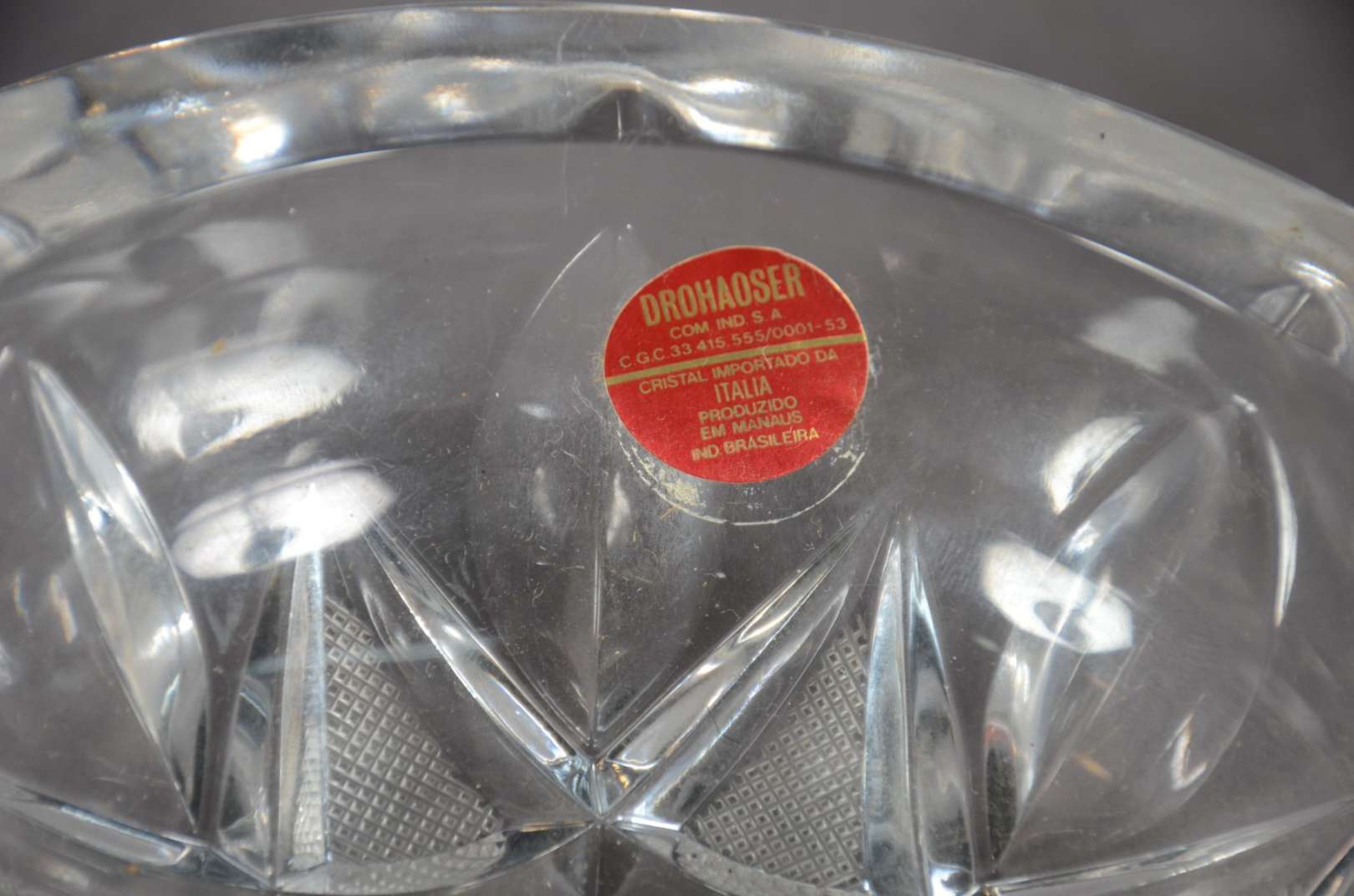 Porta petiscos de cristal com 4 divisórias e recipiente oval central.
