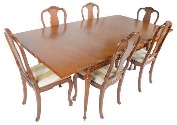 Mesa de jantar de madeira nobre com uma tabua extensora ( 110 cm x 50 cm), saia com trabalhos entalhados e pernas cil...