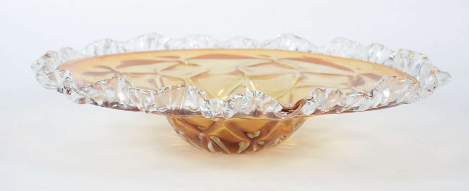 Porta petiscos de cristal com 4 divisórias e recipiente oval central.