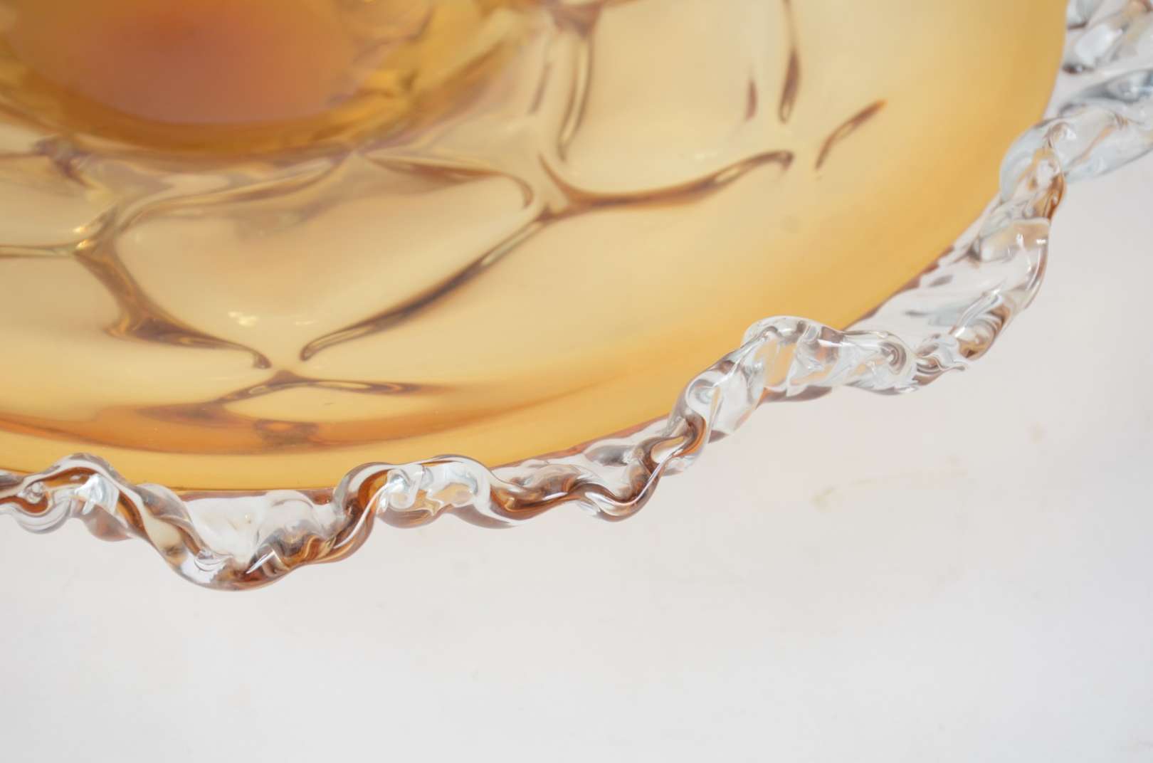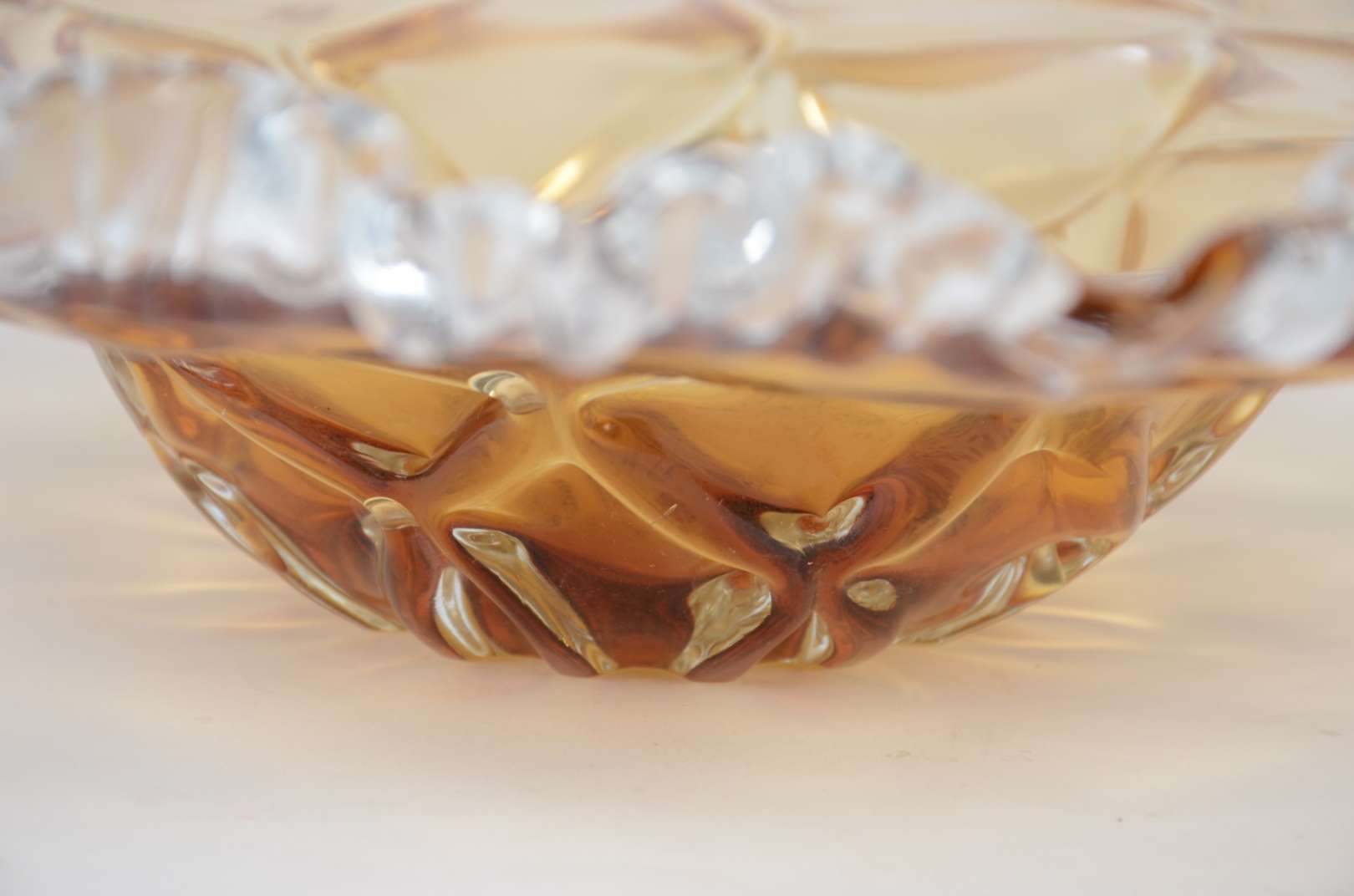 Compoteira de "vidrão" azul lapidação bico de jaca.