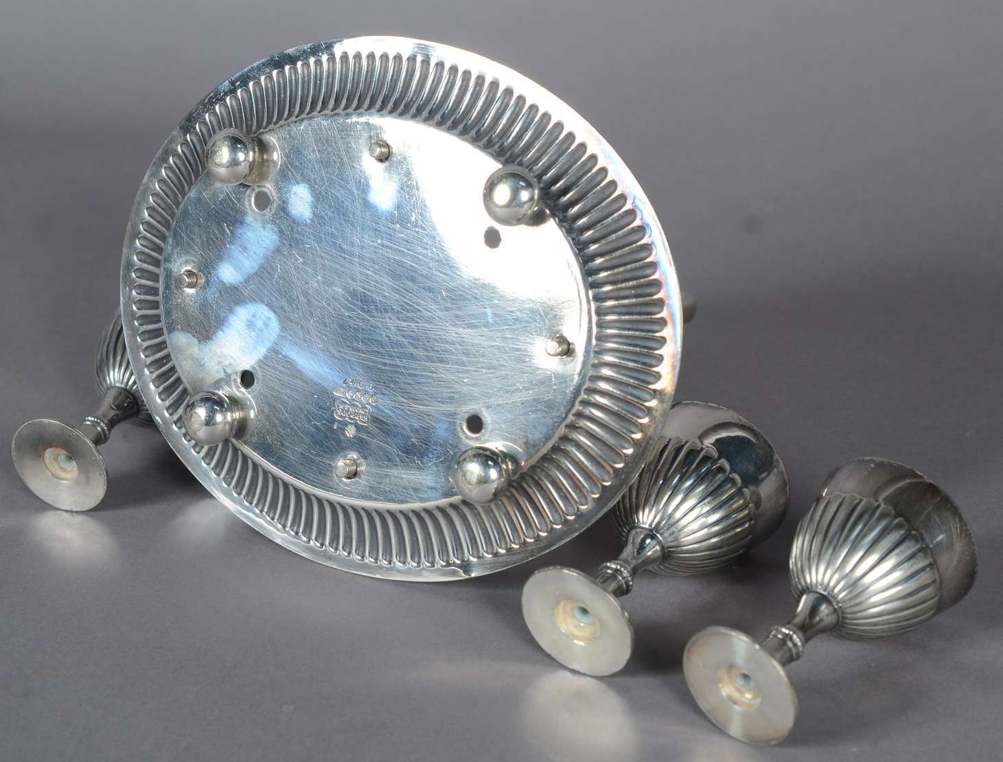 Porta petiscos de cristal com 4 divisórias e recipiente oval central.