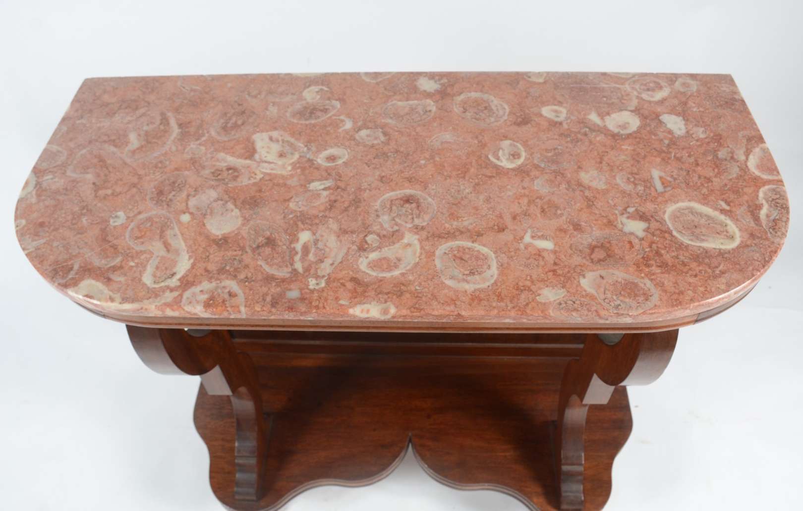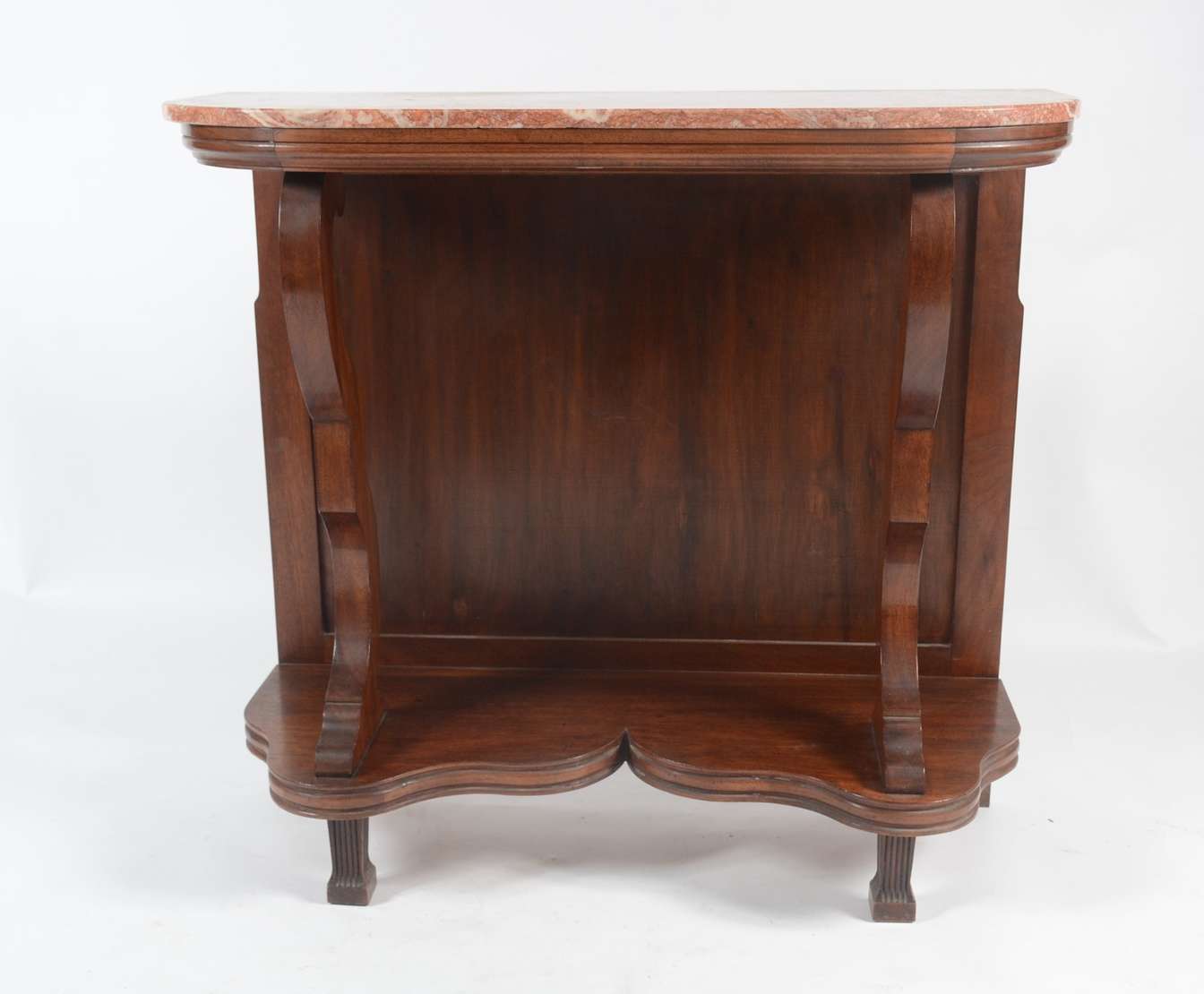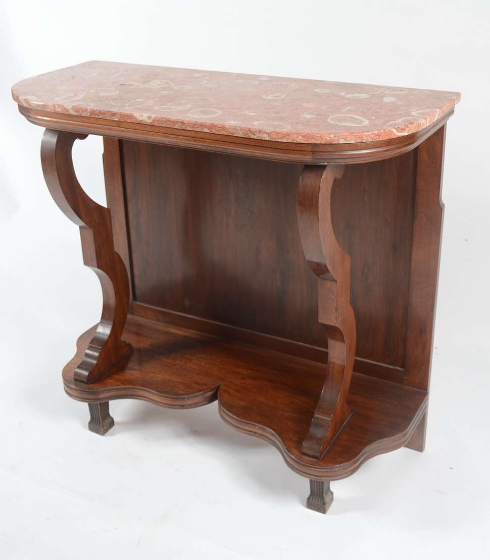 Mesa de escritório de madeira nobre, tampo retangular com mármore, tres gavetas, apoio em duas pernas em semi círculo...
