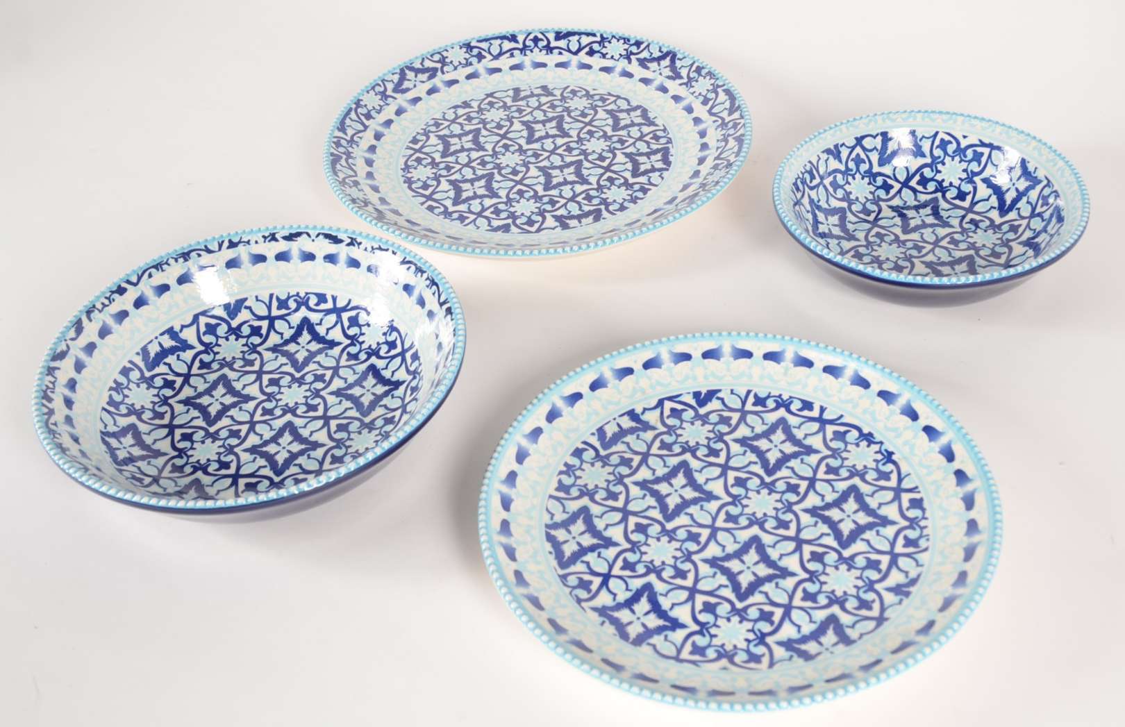 Serviço de jantar de porcelana "Emano", decorada com aves do paraíso e guirlandas florais em policromia, composto de:...