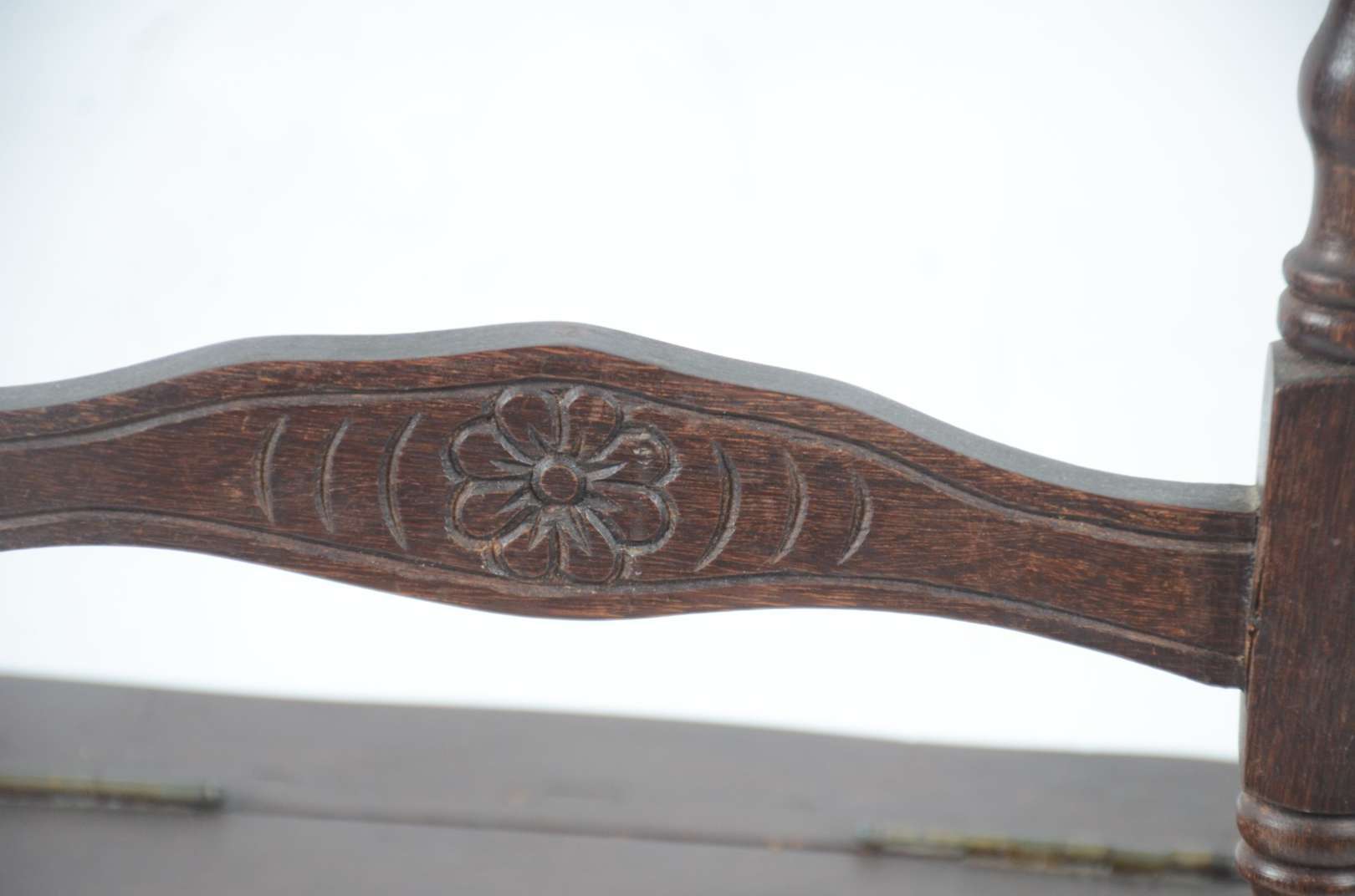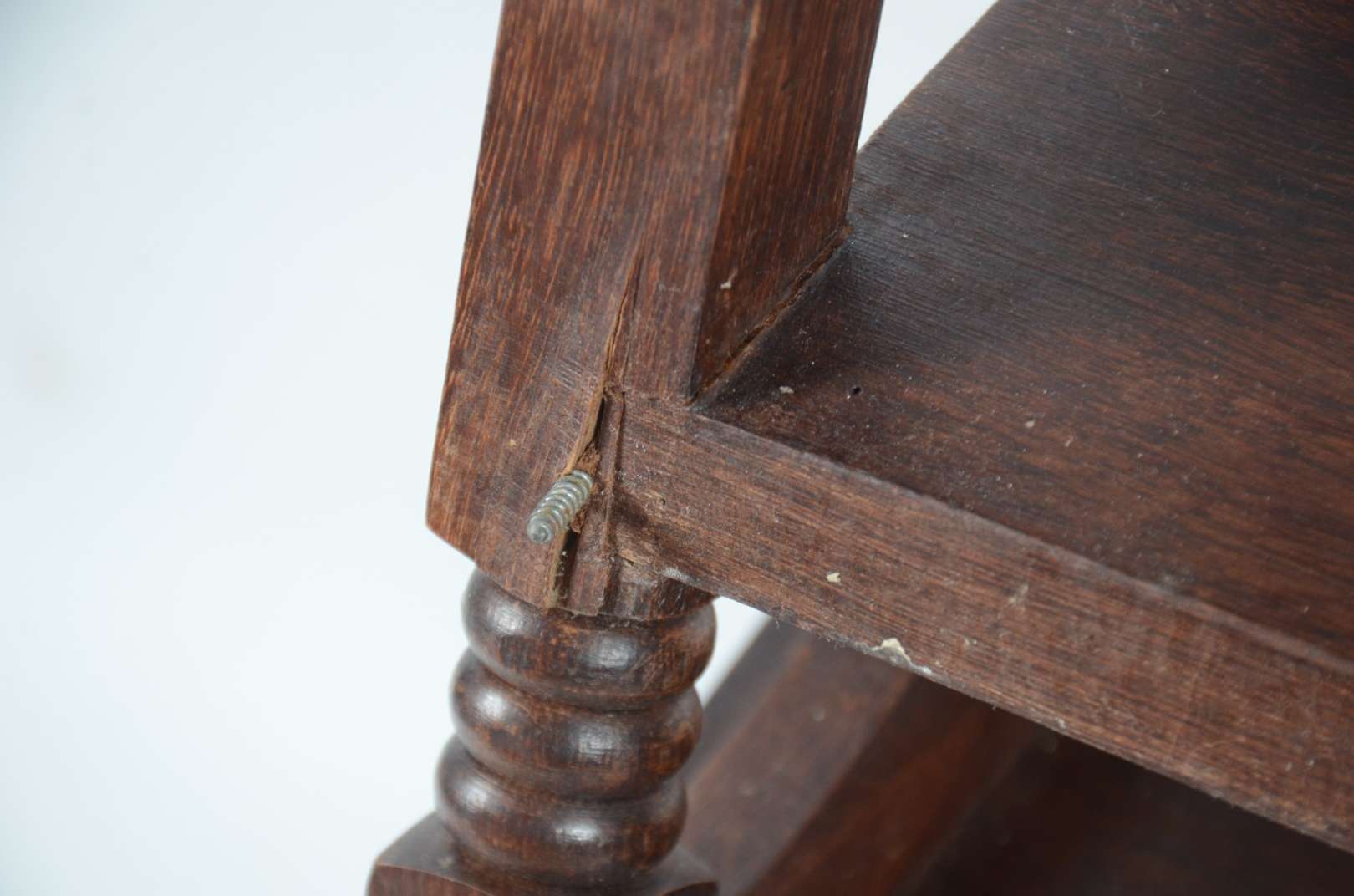 Mesa auxiliar de madeira nobre, saia recortada, quatro pernas recurvas e entalhadas ligadas por traves inferiores com...