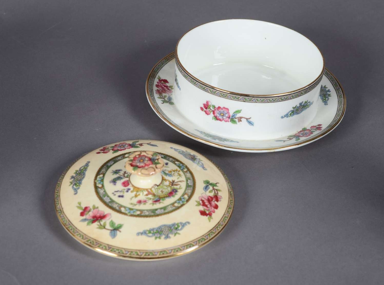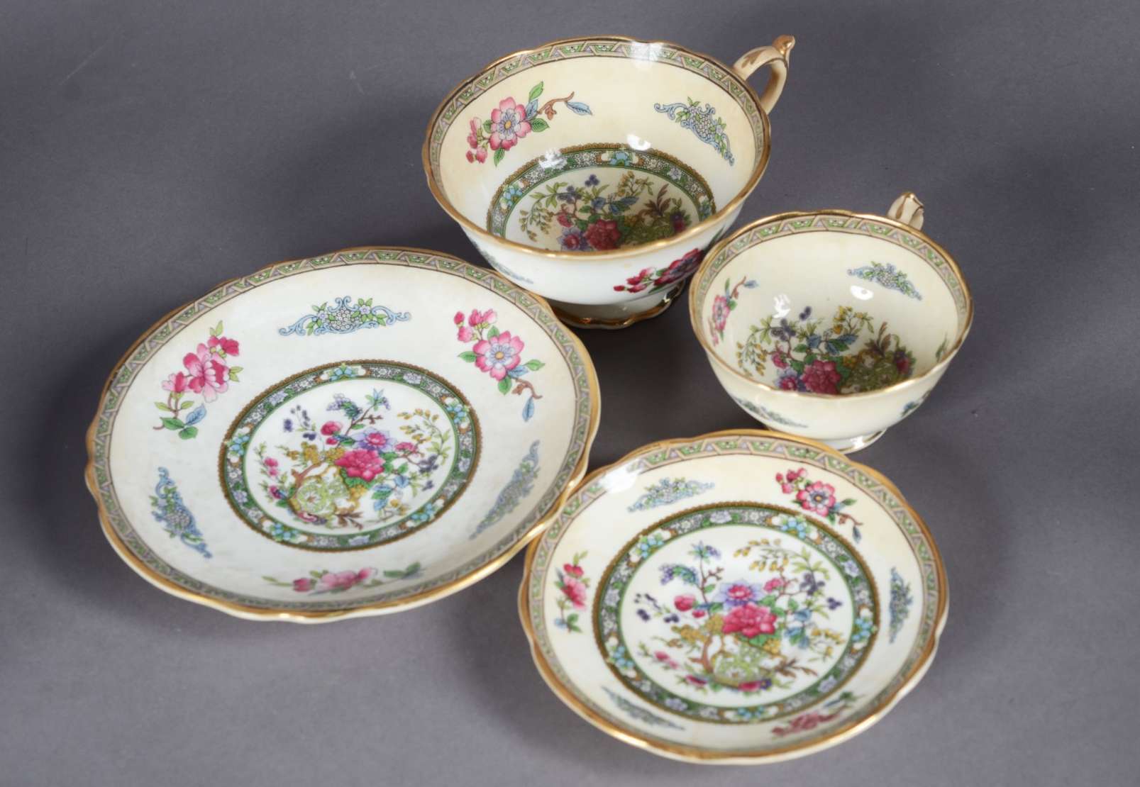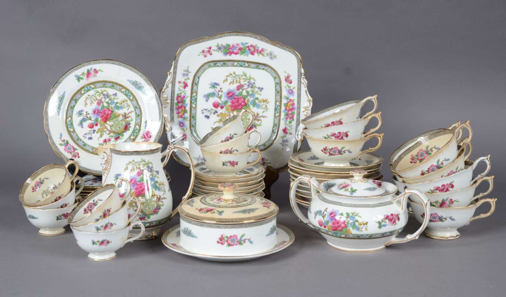 Serviço de chá de faiança inglesa "Tuscan Plant" composto de: 12 xícaras de chá com pires, 12 pratos de sobremesa, pr...