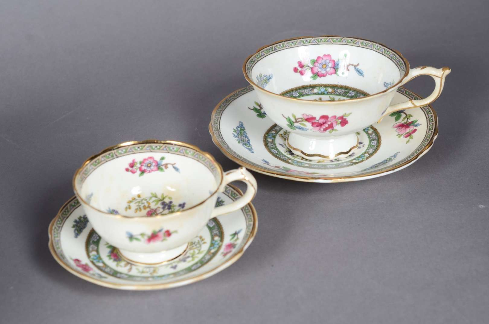 Serviço de chá de porcelana japonesa Noritake, decoração floral em policromia, composto de: 10 xícaras com pires, 10 ...