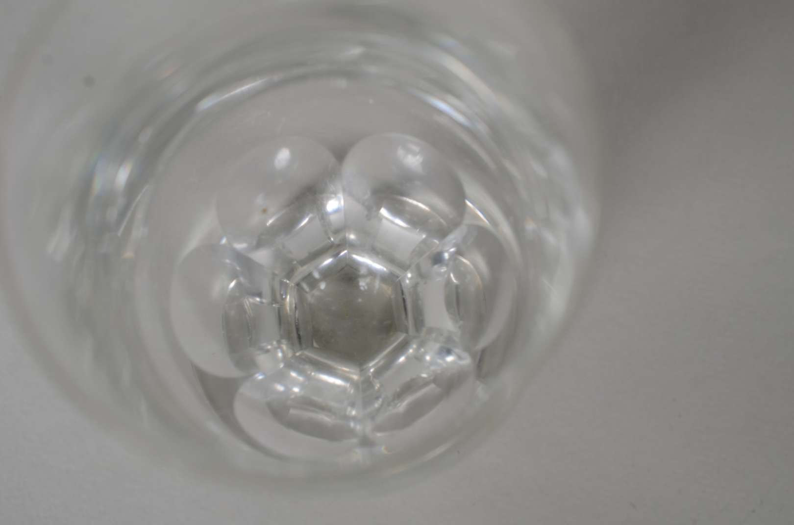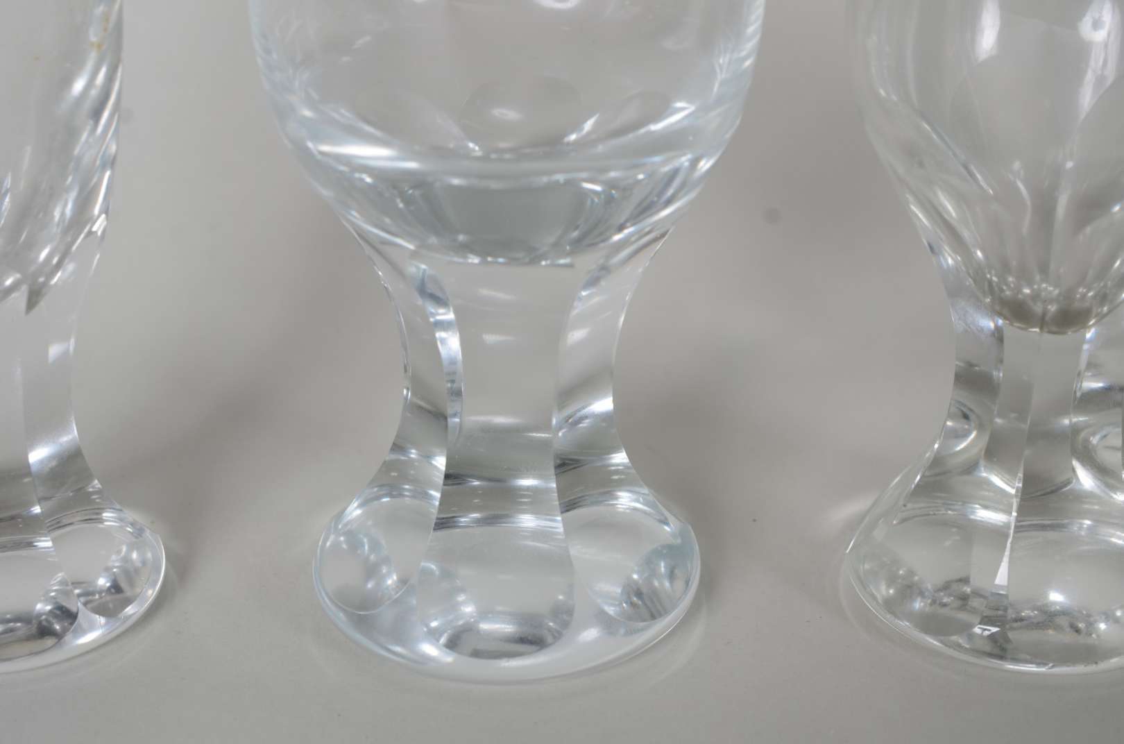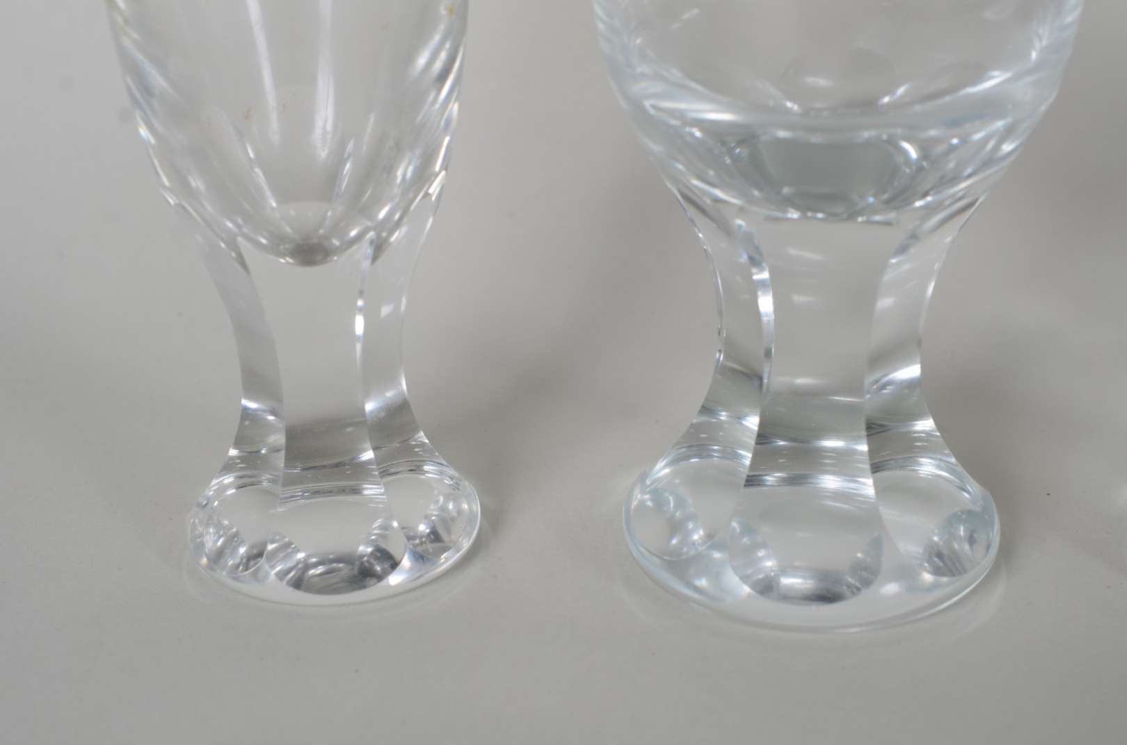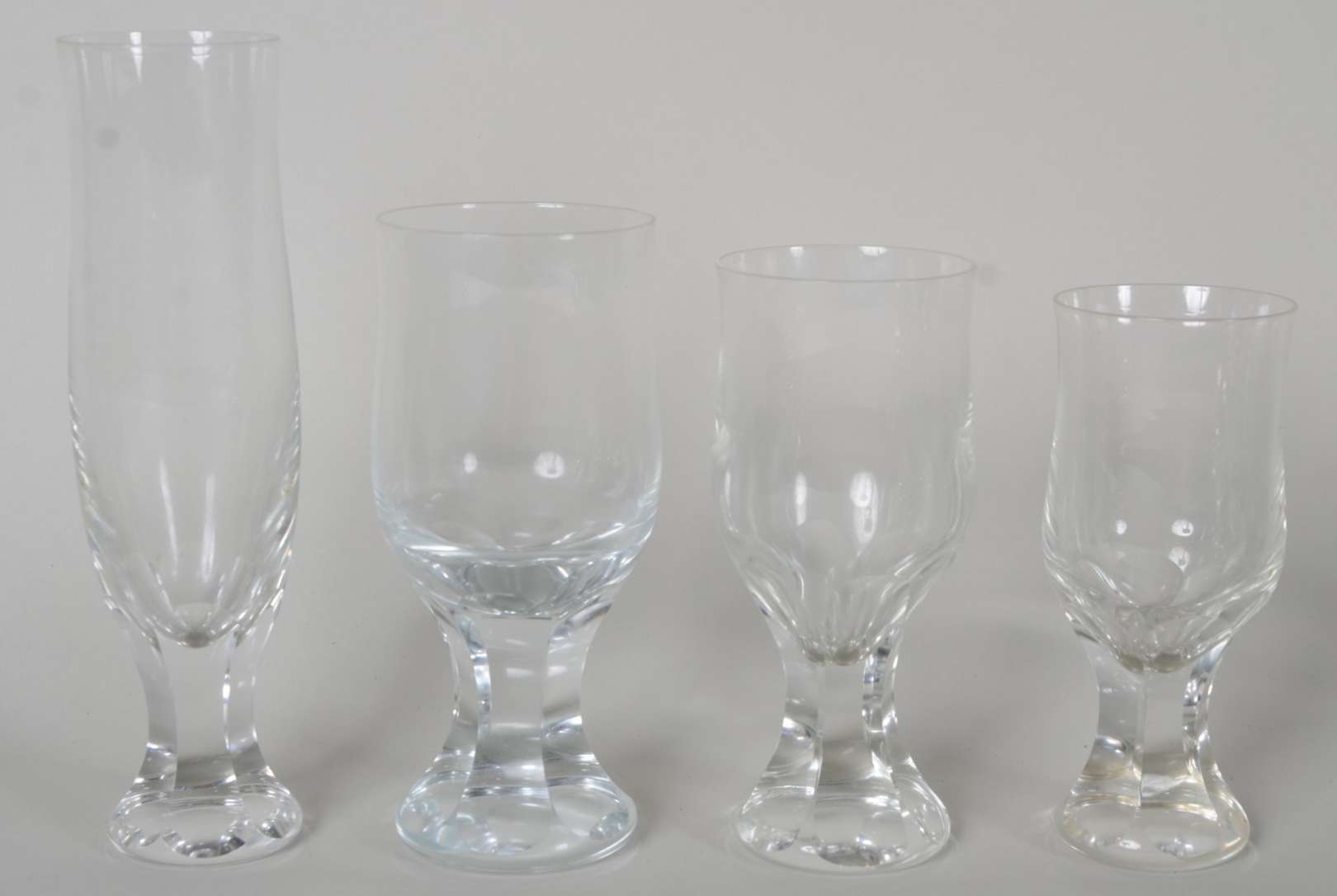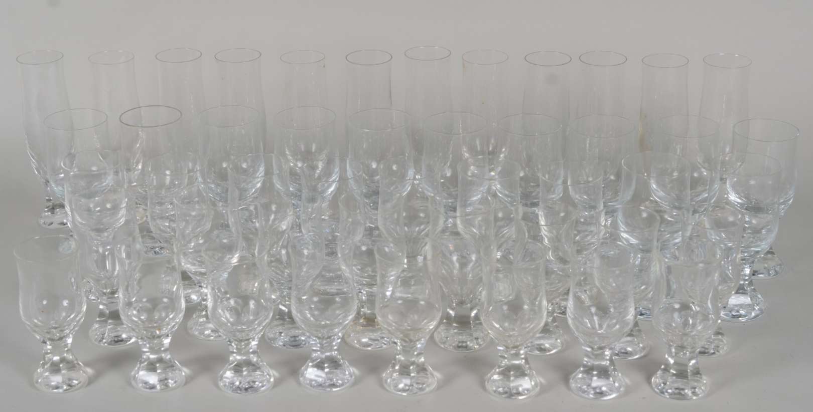 Serviço de cristal composto de: 12 flutes, 12 para água, 12 para vinho branco, 10 para vinho tinto. Total: 46 peças.