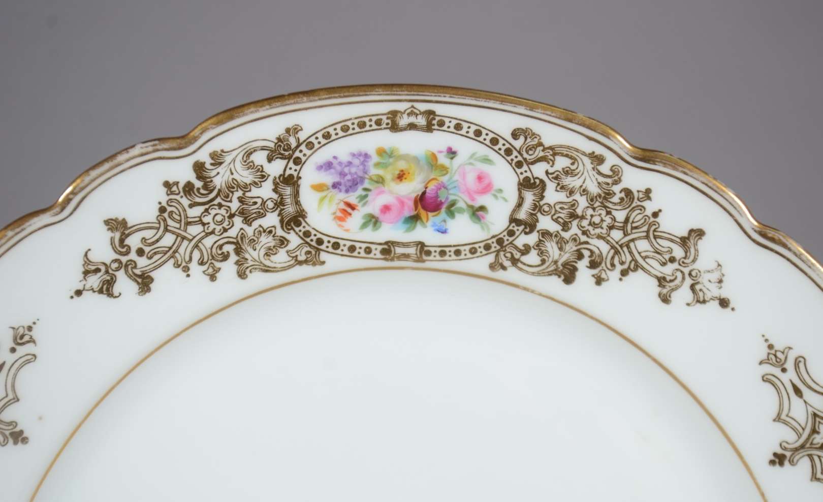 Aparelho de jantar de porcelana alemã Rosenthal, na cor branca com flores em policromia, composto de: 24 pratos rasos...