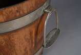 Samovar russo de metal dourado, corpo cilíndrico, base quadrada e pés de sapata. Pegas articuladas guarnecidas em mad...
