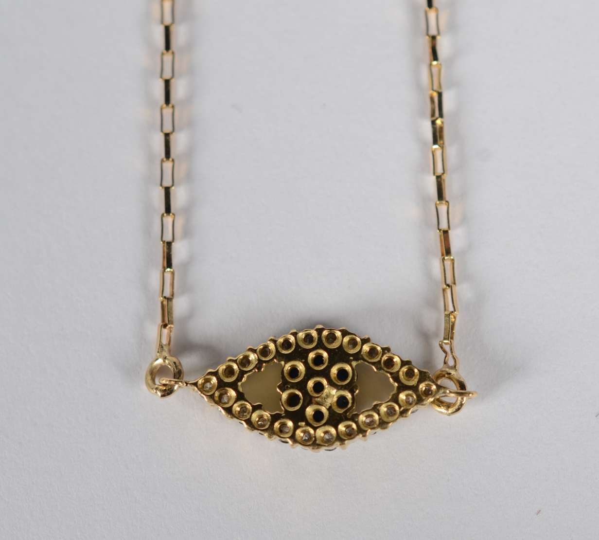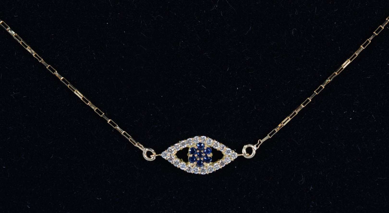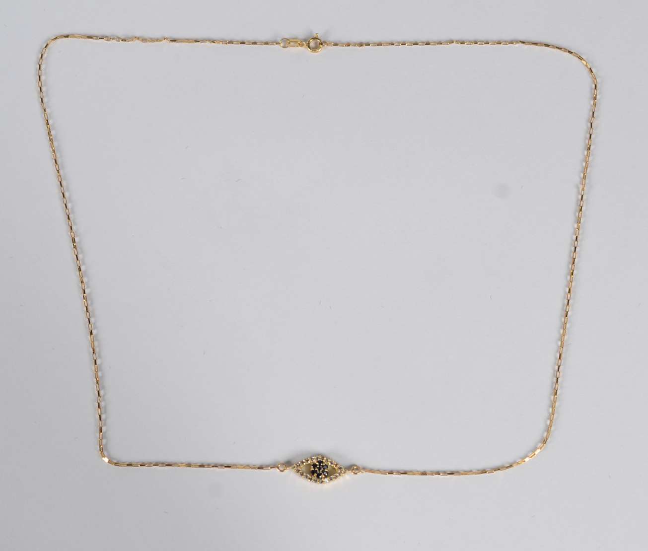 Colar de ouro 18 k., contraste 750 com pedra de luz. (Por motivos de segurança a peça não se encontra na loja)