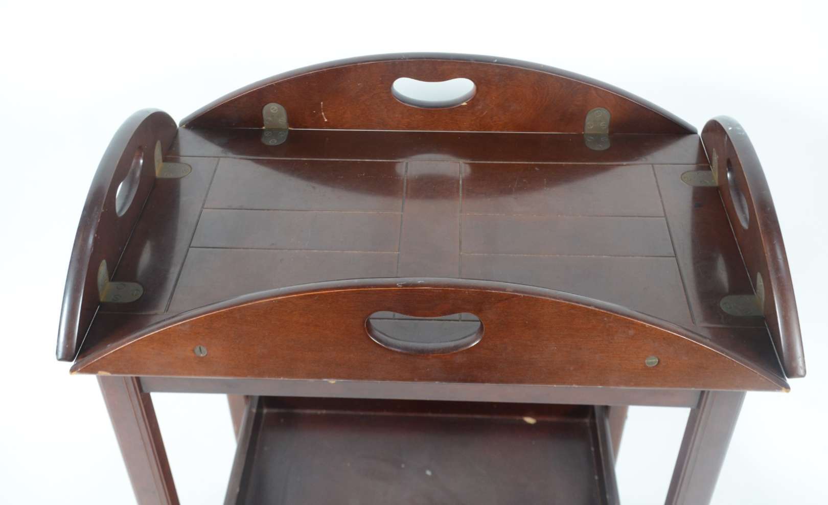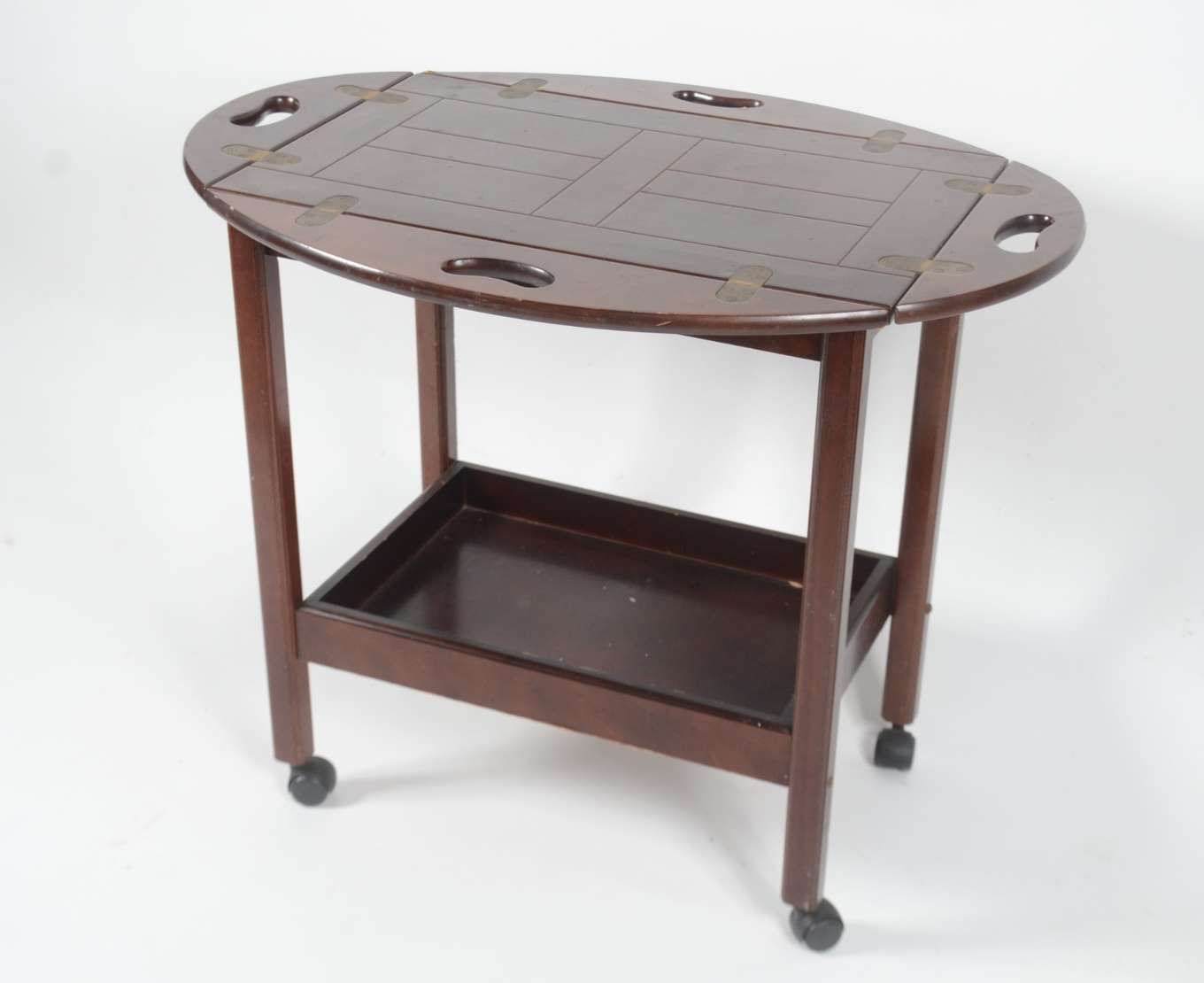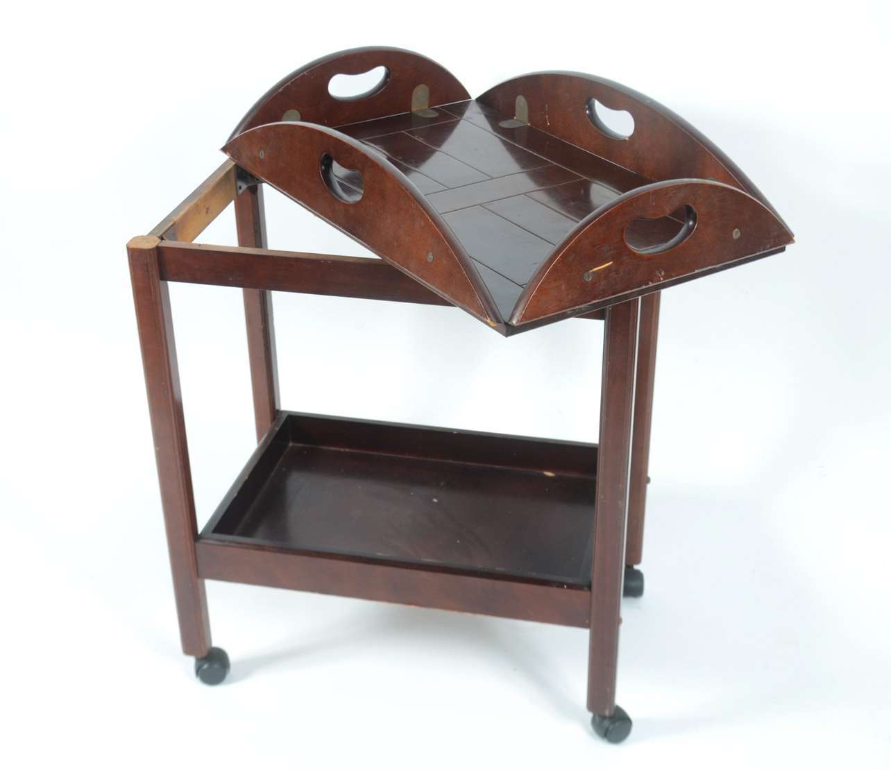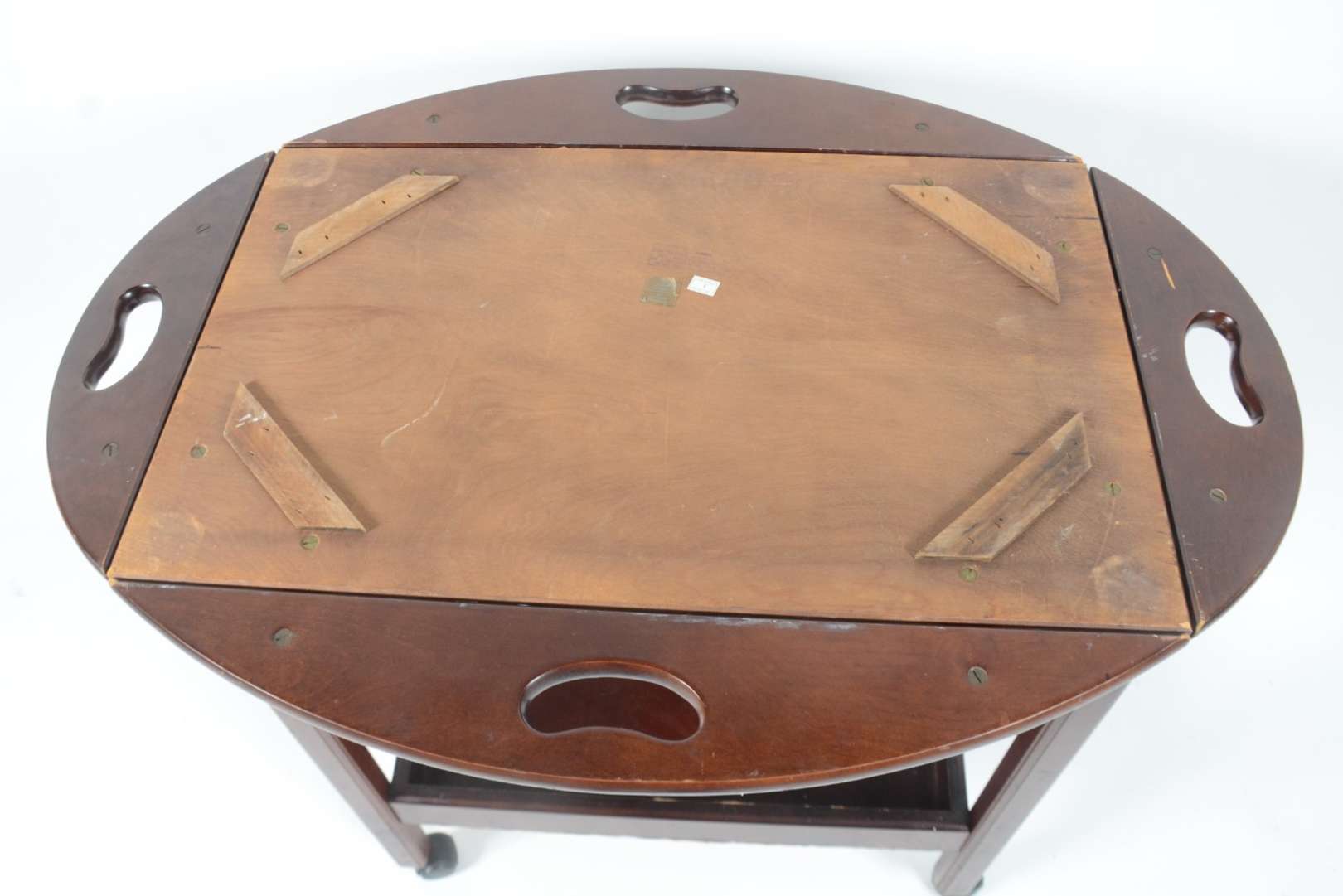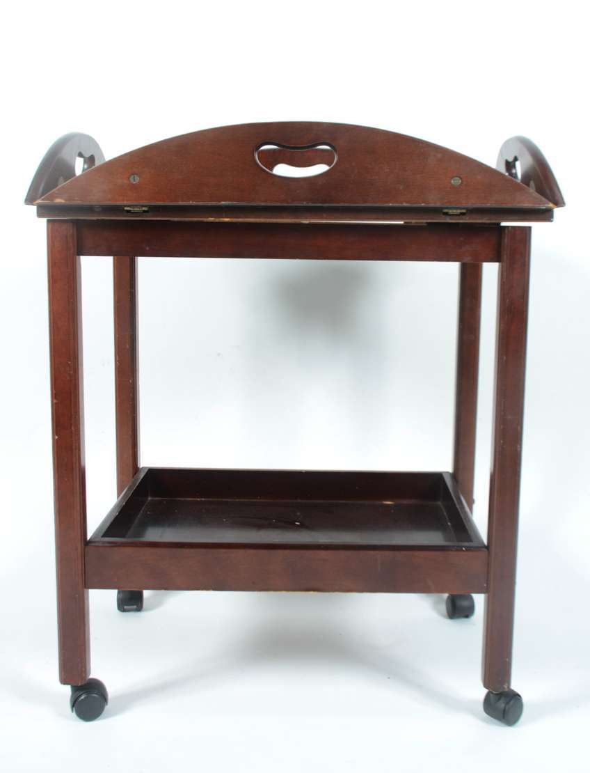 Mesa/aparador de jacarandá, tampo dobrável, apoio em duplo balaústre canelado terminando em tres pernas recurvas cada...