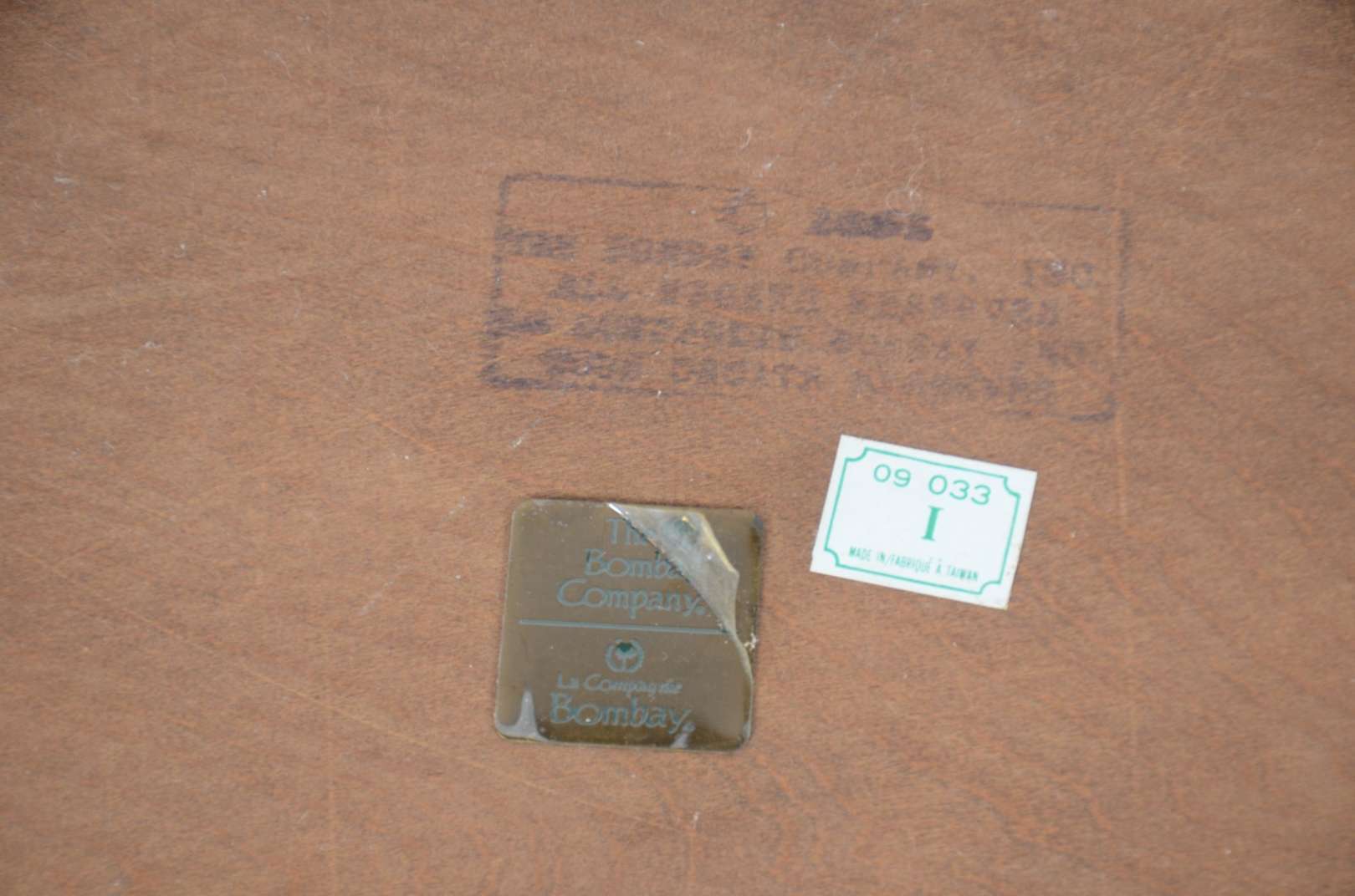 Mesa auxiliar de madeira nobre, saia recortada, quatro pernas recurvas e entalhadas ligadas por traves inferiores com...