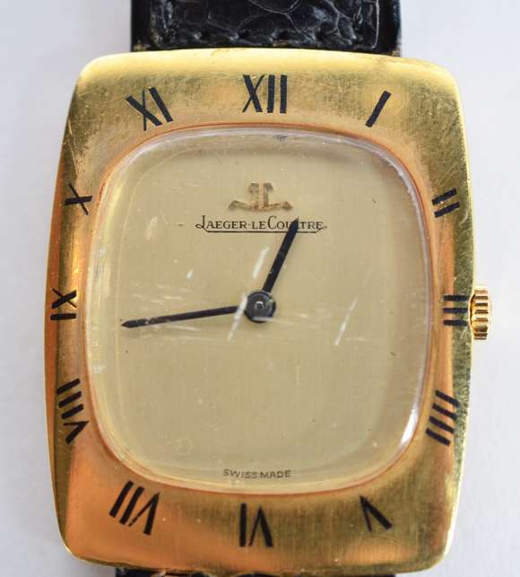 Relógio suiço de pulso, caixa de plaque d'or, a corda, pulseira de couro (pulseira não é original). Marcas de uso.