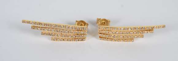 Par de brincos de ouro 18k., contraste 750 cravejado de brilhantes na forma de cascata. (Por motivos de segurança a ...