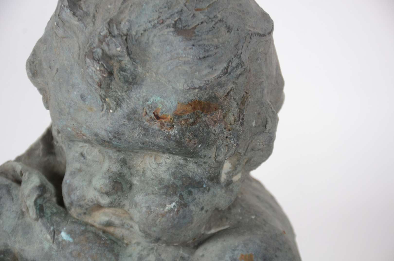 Escultura de petit bronze representando "busto de casal". Desgastes. Assinado F.DANTES.