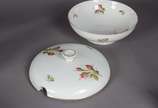 Parte de serviço de porcelana Velho Paris, decorado com guirlandas douradas e bouquet de flores em policromia, compos...