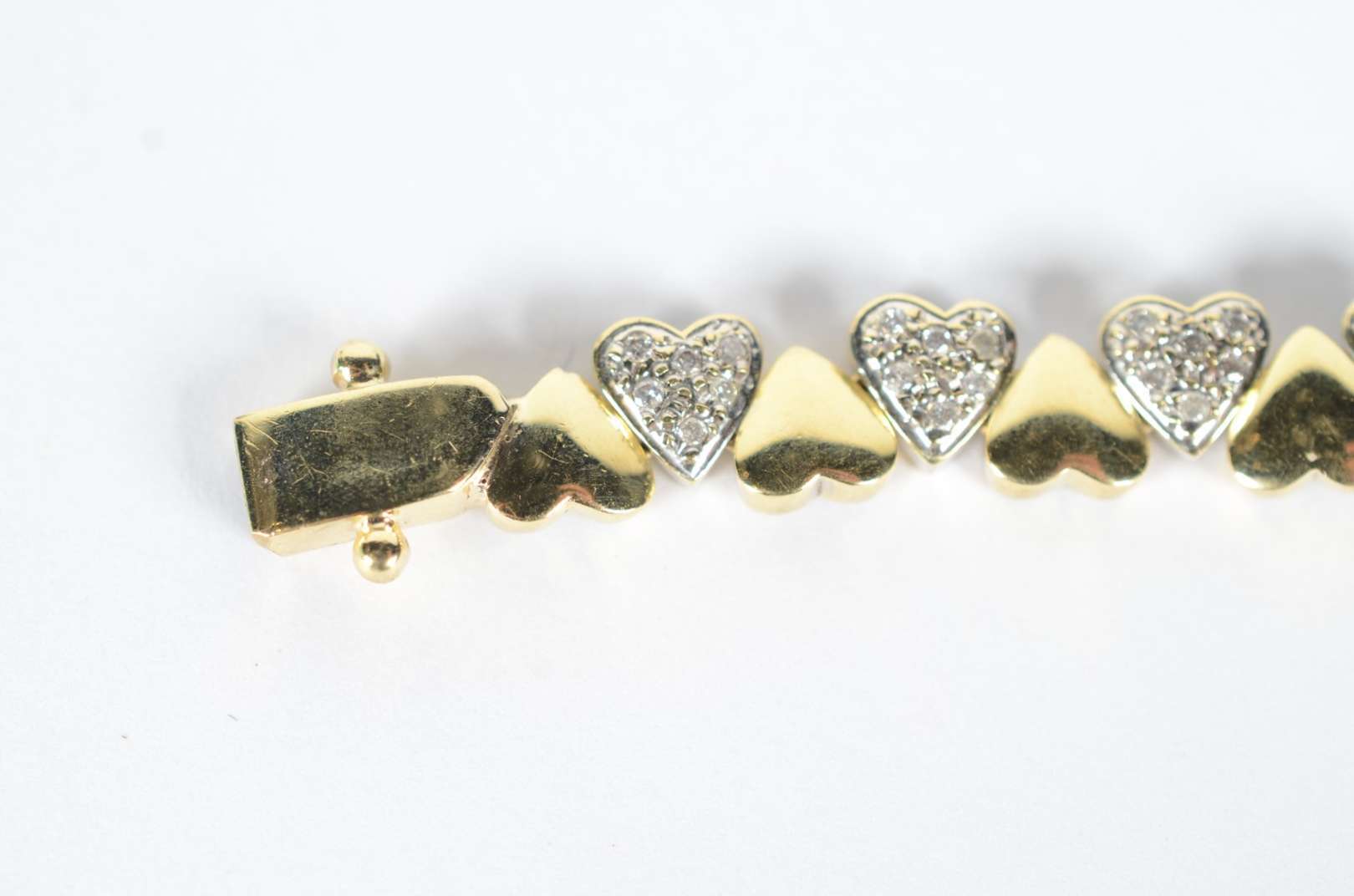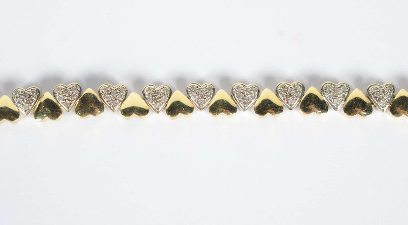 Pulseira de ouro 18k., e ouro branco, contraste 750 cravejado com 96 brilhantes. (Por motivos de segurança a peça não se encontra na loja)
