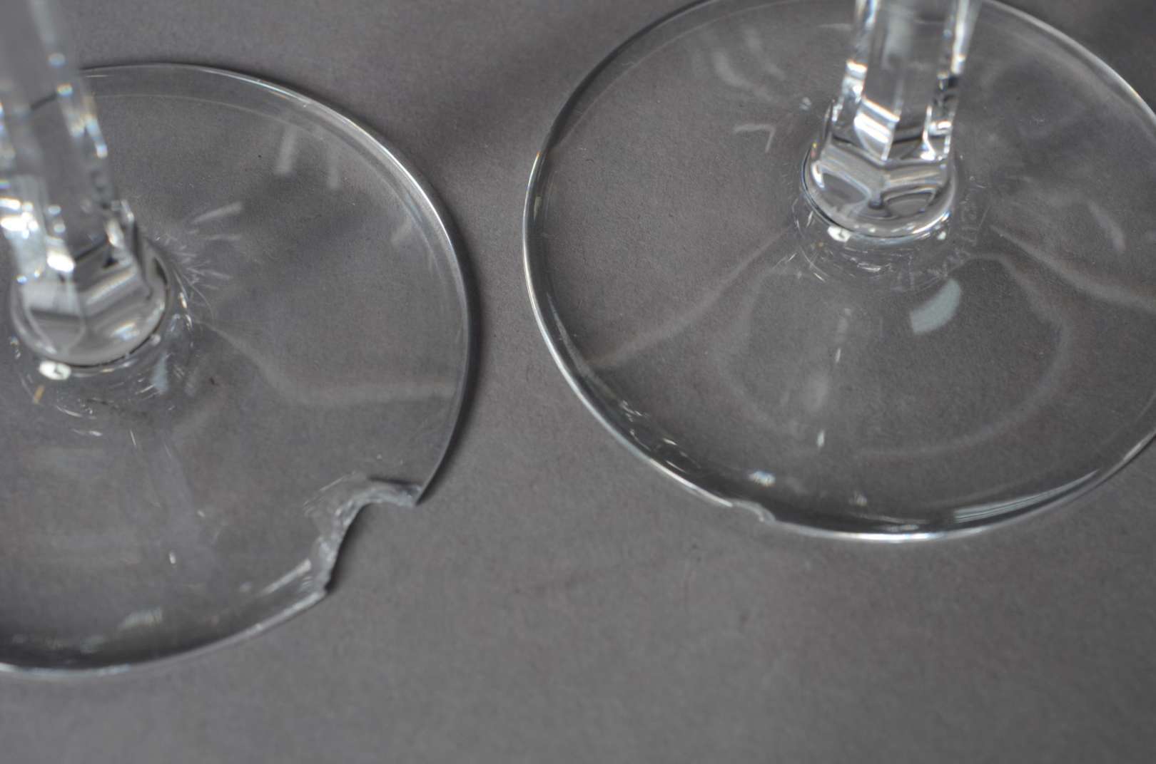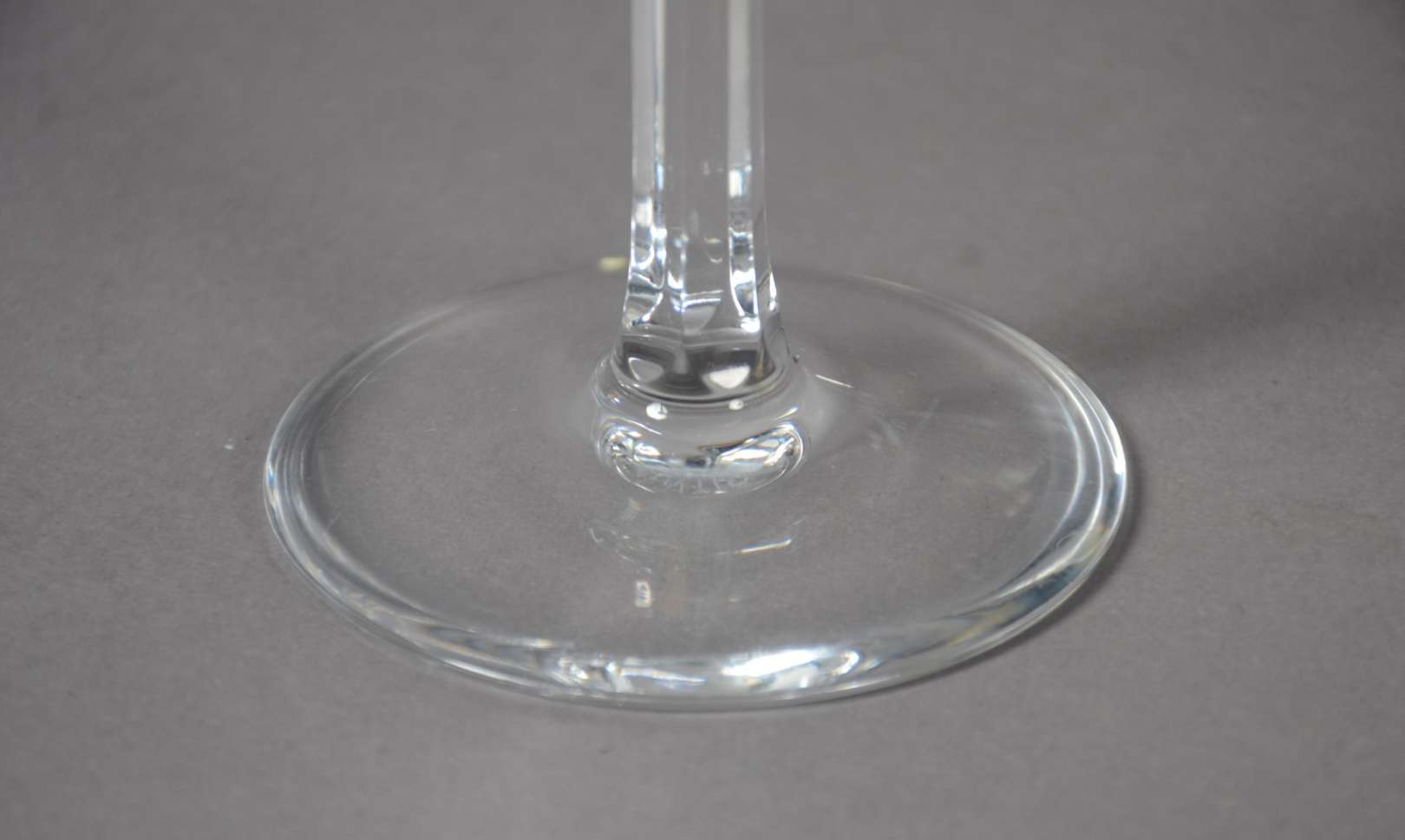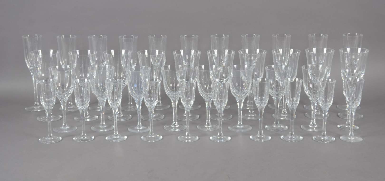 Serviço de cristal composto de: 12 flutes, 12 para água, 12 para vinho branco, 10 para vinho tinto. Total: 46 peças.
