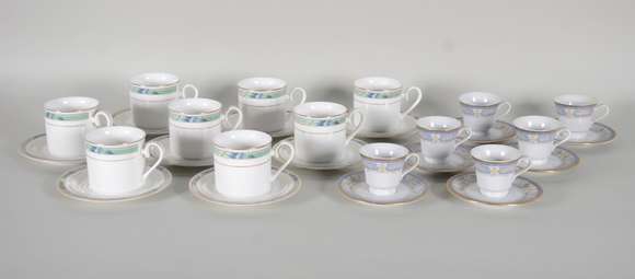 Dois conjuntos de xícaras de porcelana, sendo um "Red Sea" para chá com 8 xícaras com pires; e outro "Germer" com ...