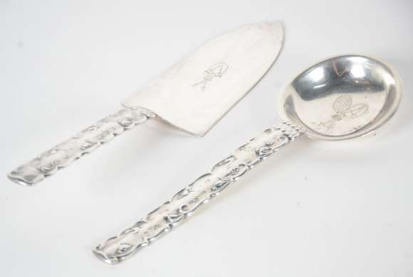Par de talheres de servir , sendo: espátula de prata contraste 800 mls e colher de metal. Peso da espátula de prata: ...