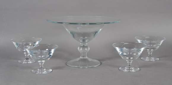 Fruteira com 4 taças de cristal português. Marcado na base.