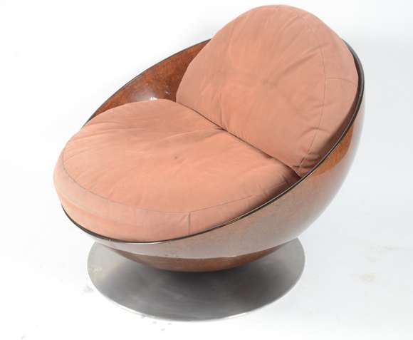 Poltrona Esfera fabricada em fibra de vidro e resina de poliester, base de metal giratória. Monograma do artista na p...