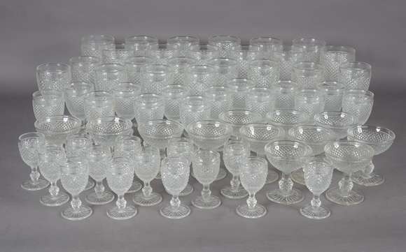 Serviço de jantar de porcelana Renner, decoração floral, composto de: 34 pratos rasos, 23 pratos fundos e 27 pratos de sobremesa. Total: 84 peças.