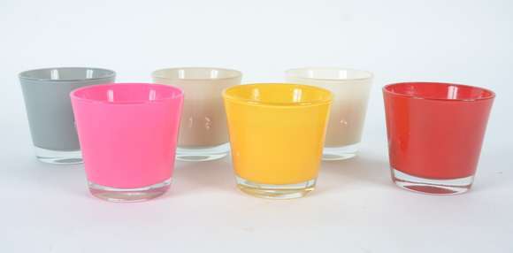 Lustre de cristal com 6 braços, mangas de vidro degradê âmbar. Um bocal quebrado.