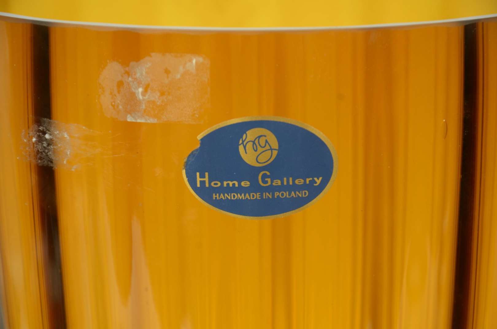 Vaso de vidro decorativo em tons de âmbar e verde degradé.