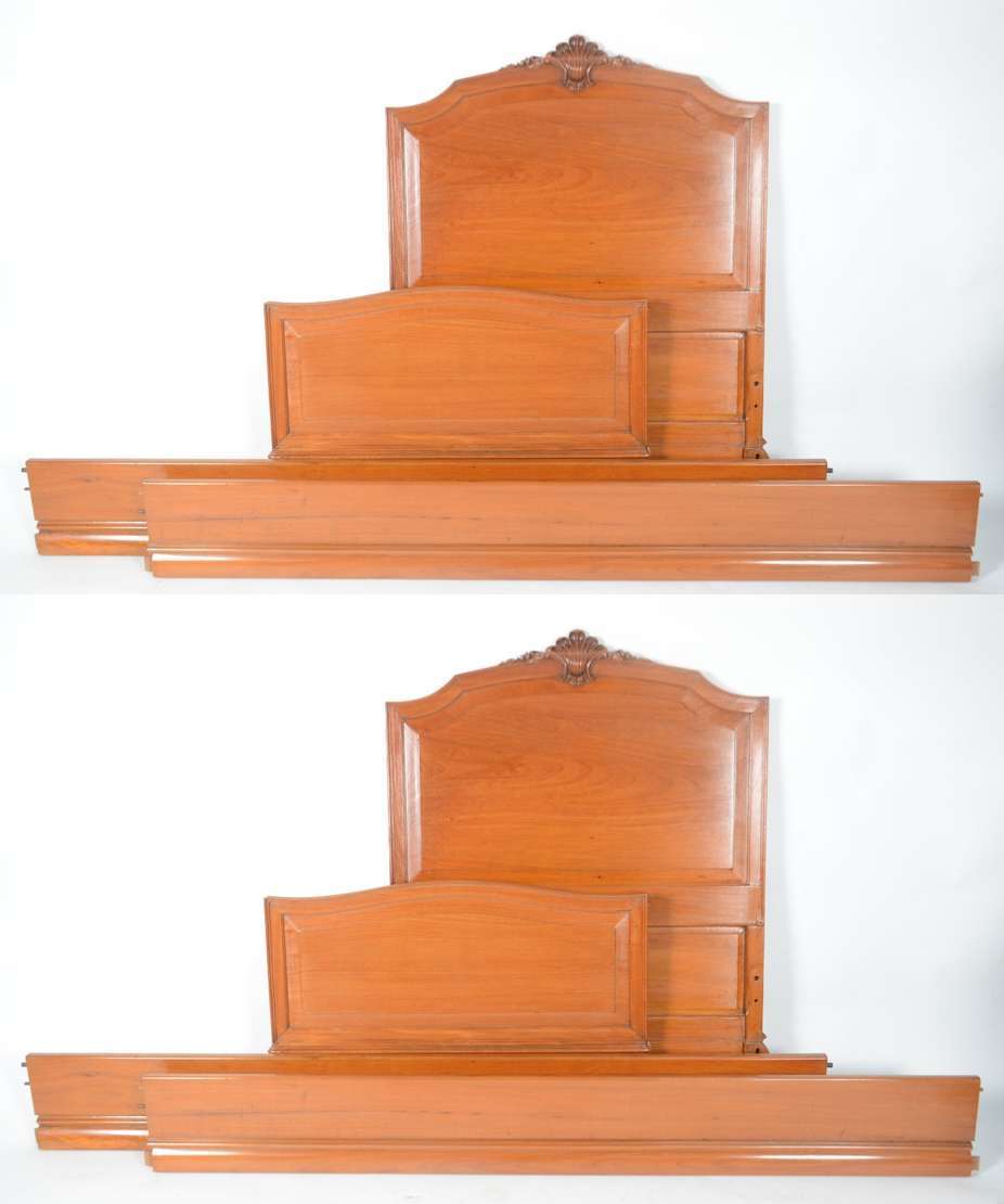 Par de camas de solteiros de madeira nobre, completa com laterais e estrado. Estilo Chipendale.