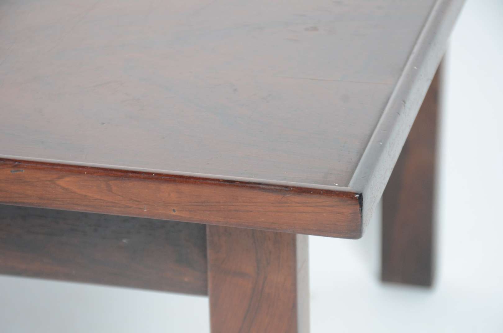 Par de poltronas "Senior" de jacarandá e couro sintético preto. Com desgastes.