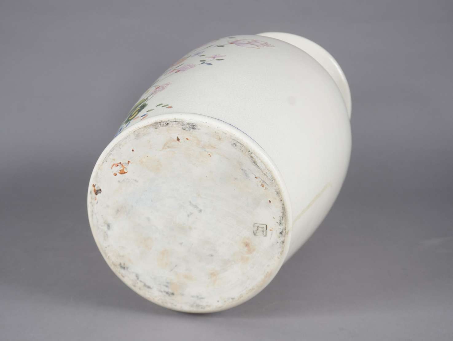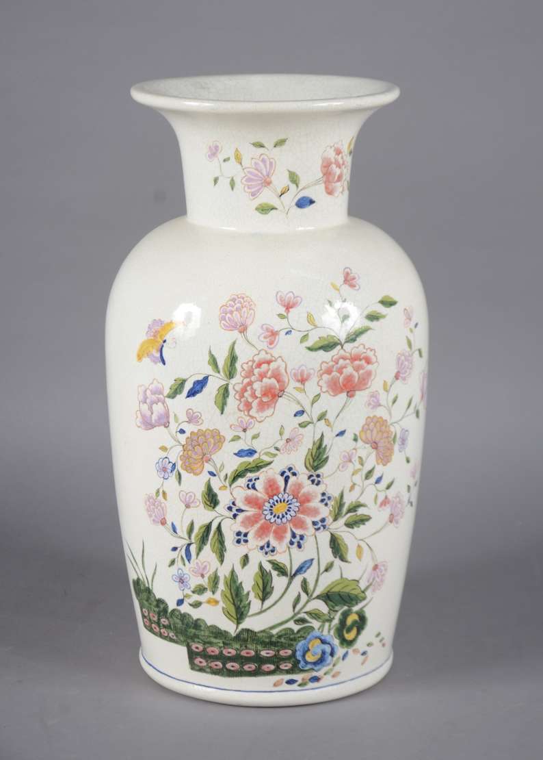 Vaso de porcelana oriental com flores em policromia.