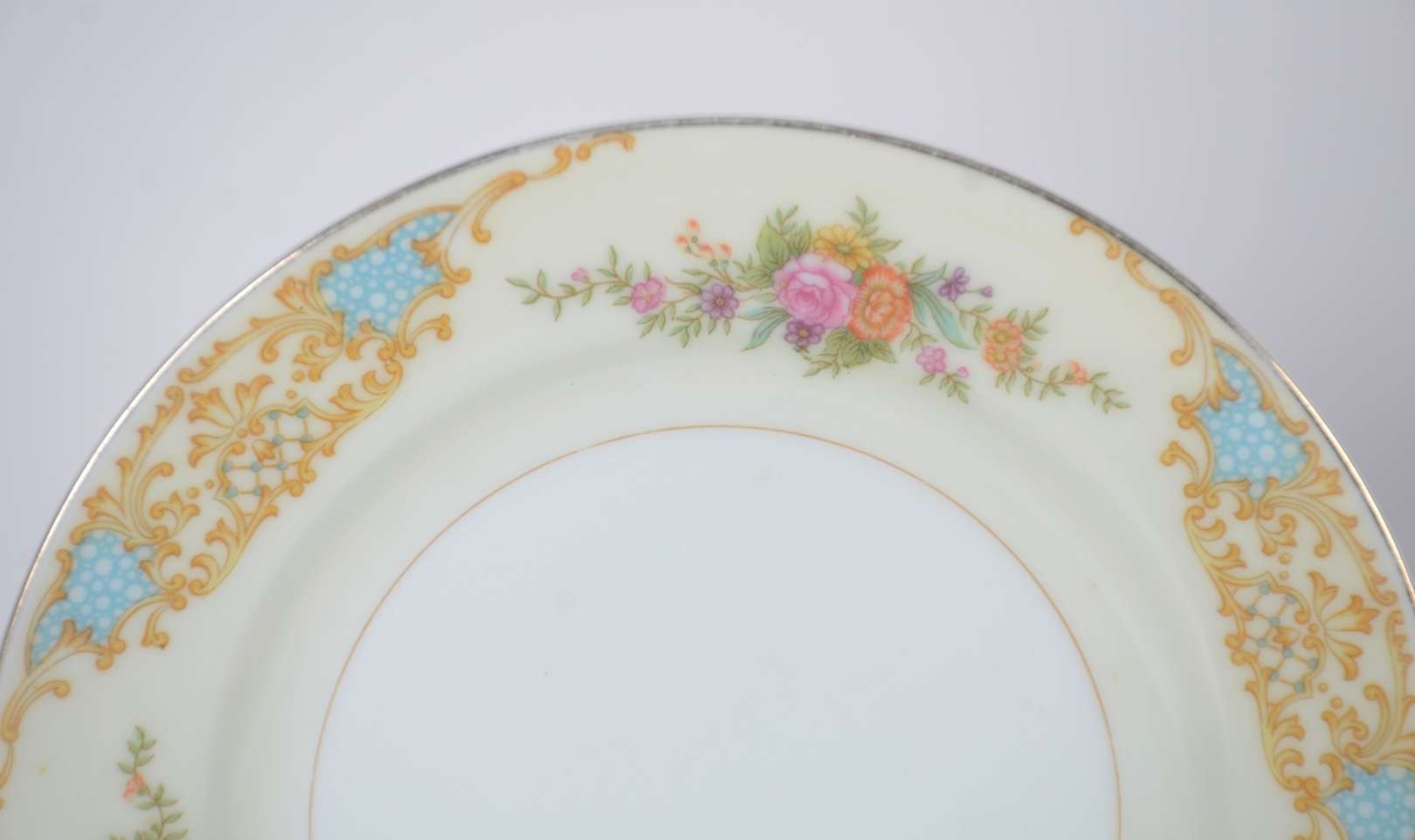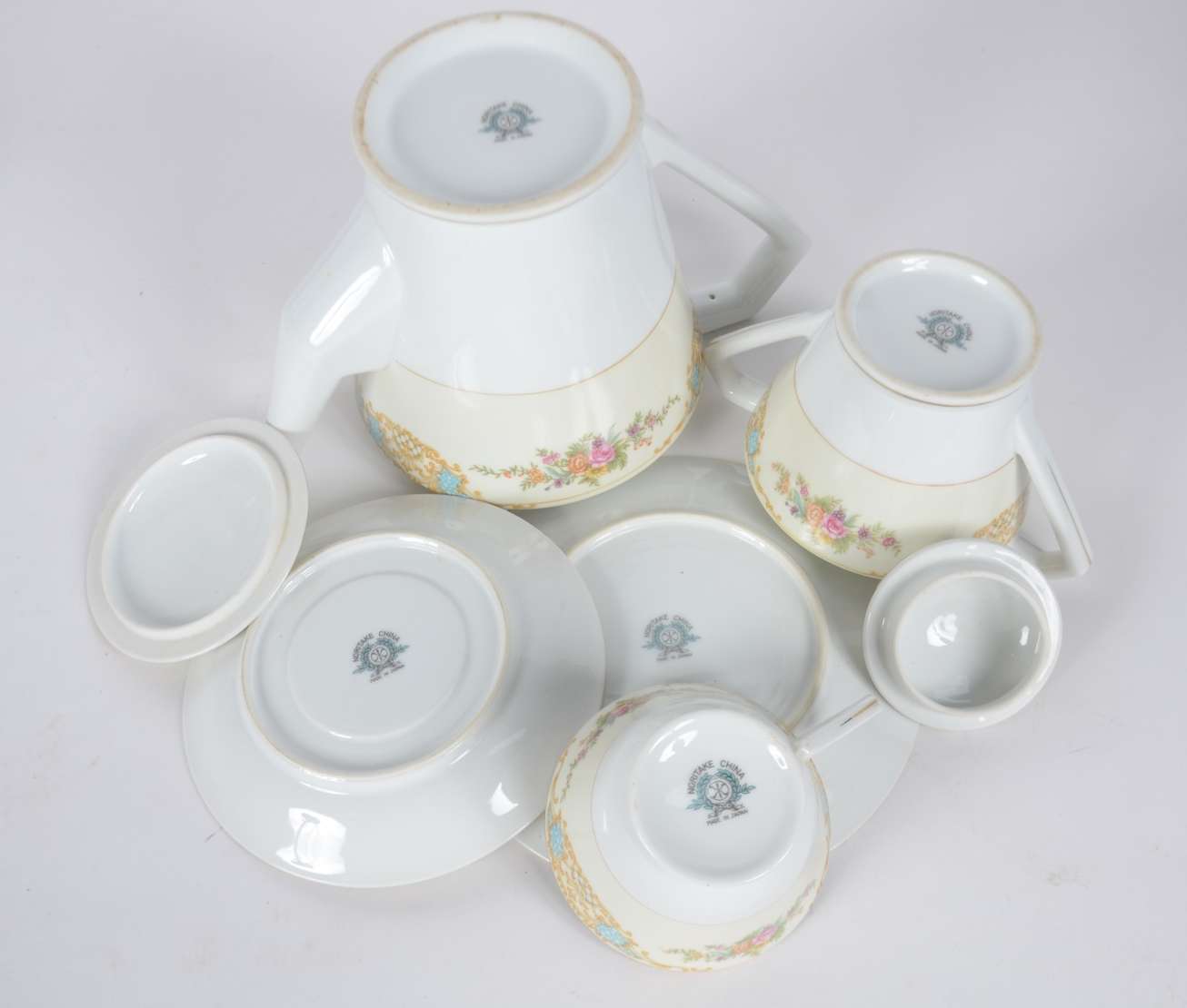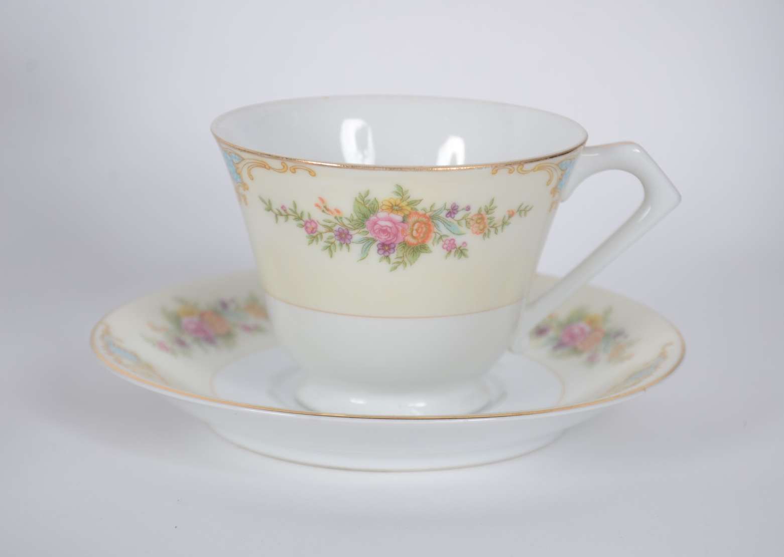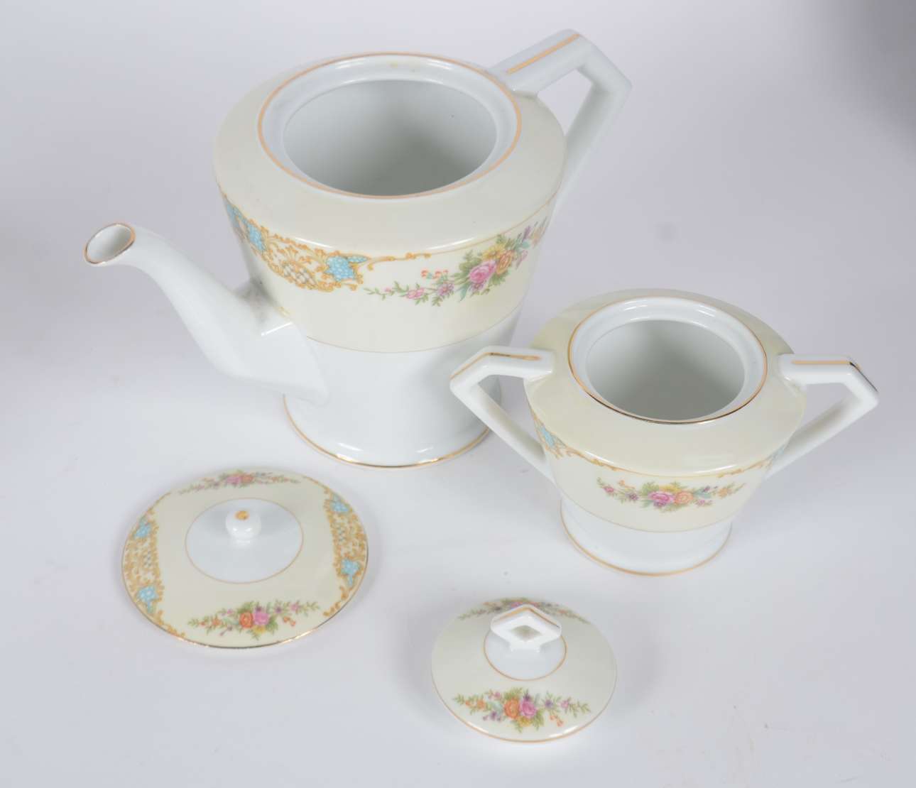 Parte de serviço de porcelana Velho Paris, decorado com guirlandas douradas e bouquet de flores em policromia, compos...