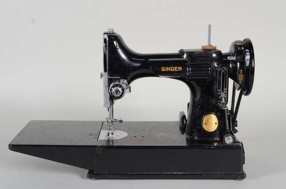 Máquina de costura portátil, no estojo. Anos 40. Funcionando.