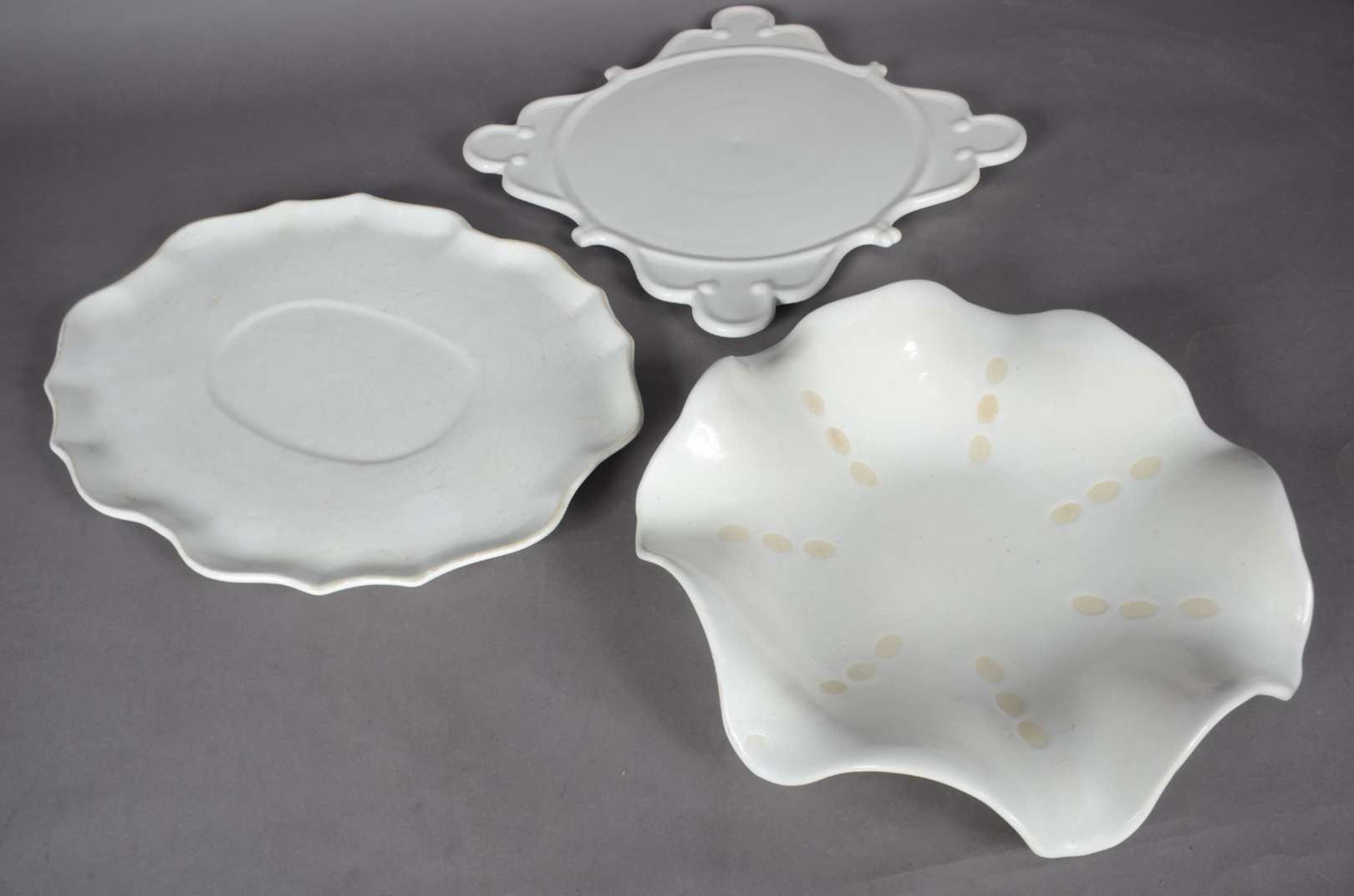 Diversas peças de metal, sendo: 2 salvas e 12 descansos de talheres. Total: 14 peças. Desgastes no metal.
