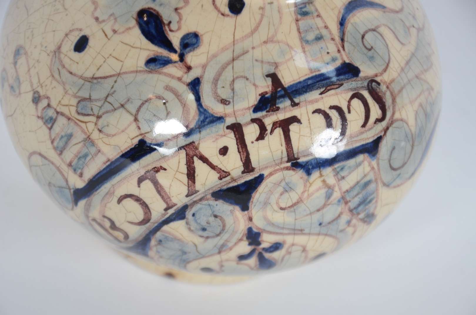 Peso de papel de vidro decorativo na cor azul com pó de ouro, trabalhado em relevo.