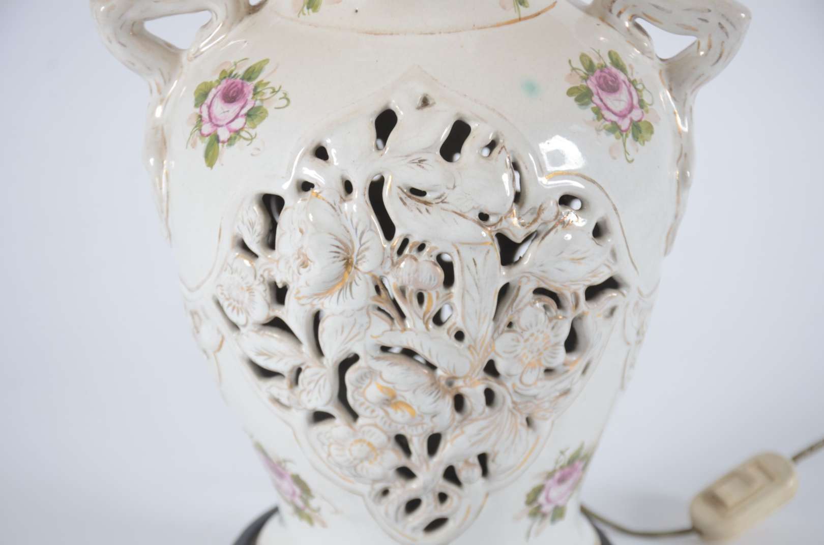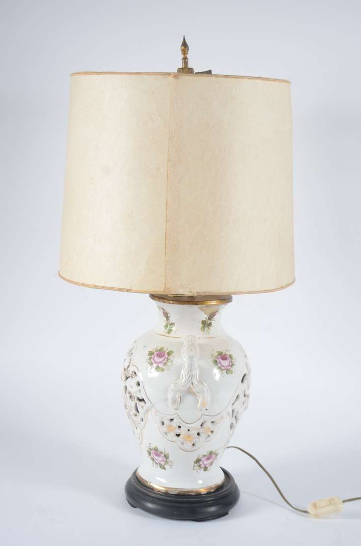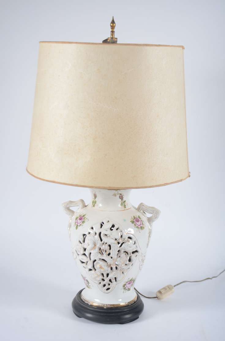 Abatjour de cerâmica "Sangue de Boi", acompanha cúpula na cor bege.