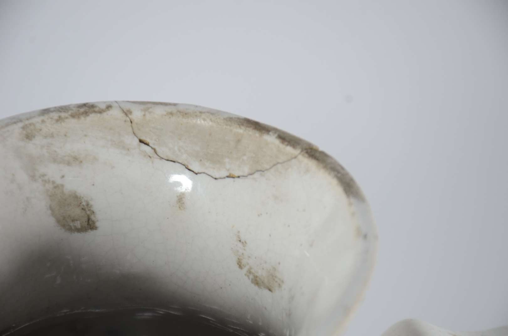 Abatjour de cerâmica na cor mostarda, pequenos bicados na borda. Base de madeira, pequeno bicado.