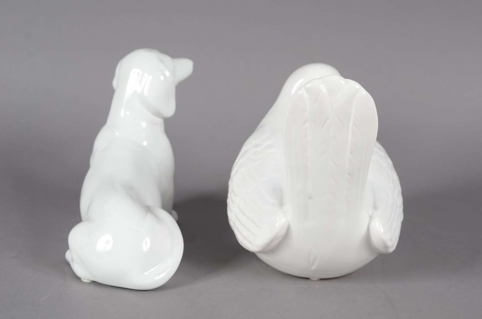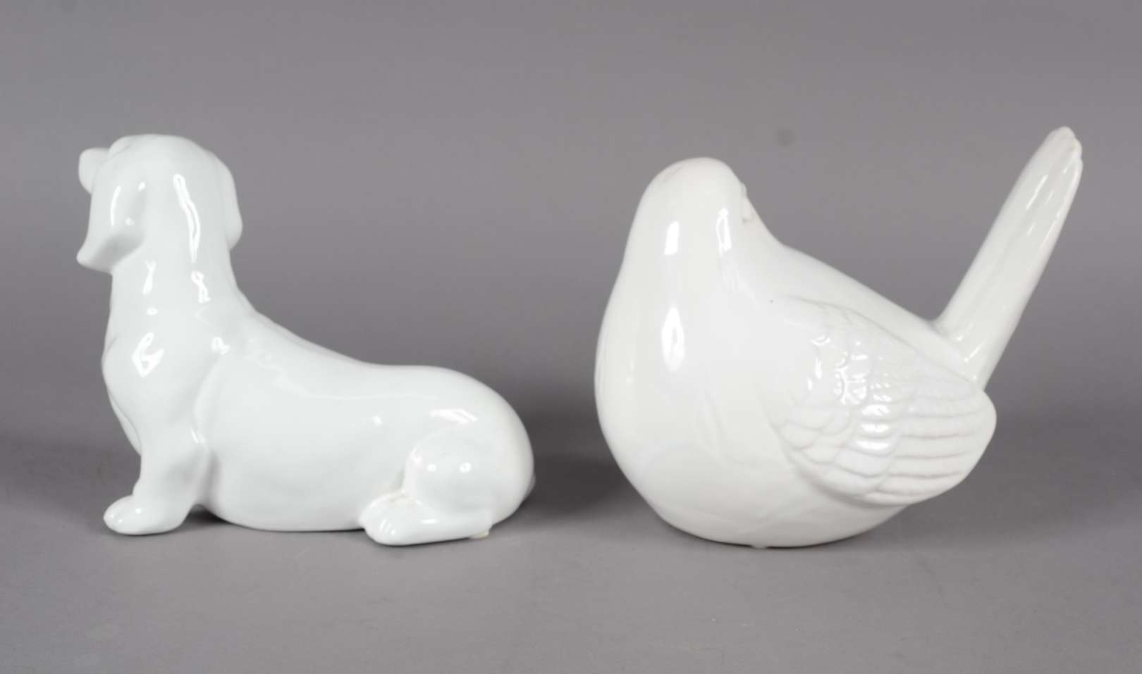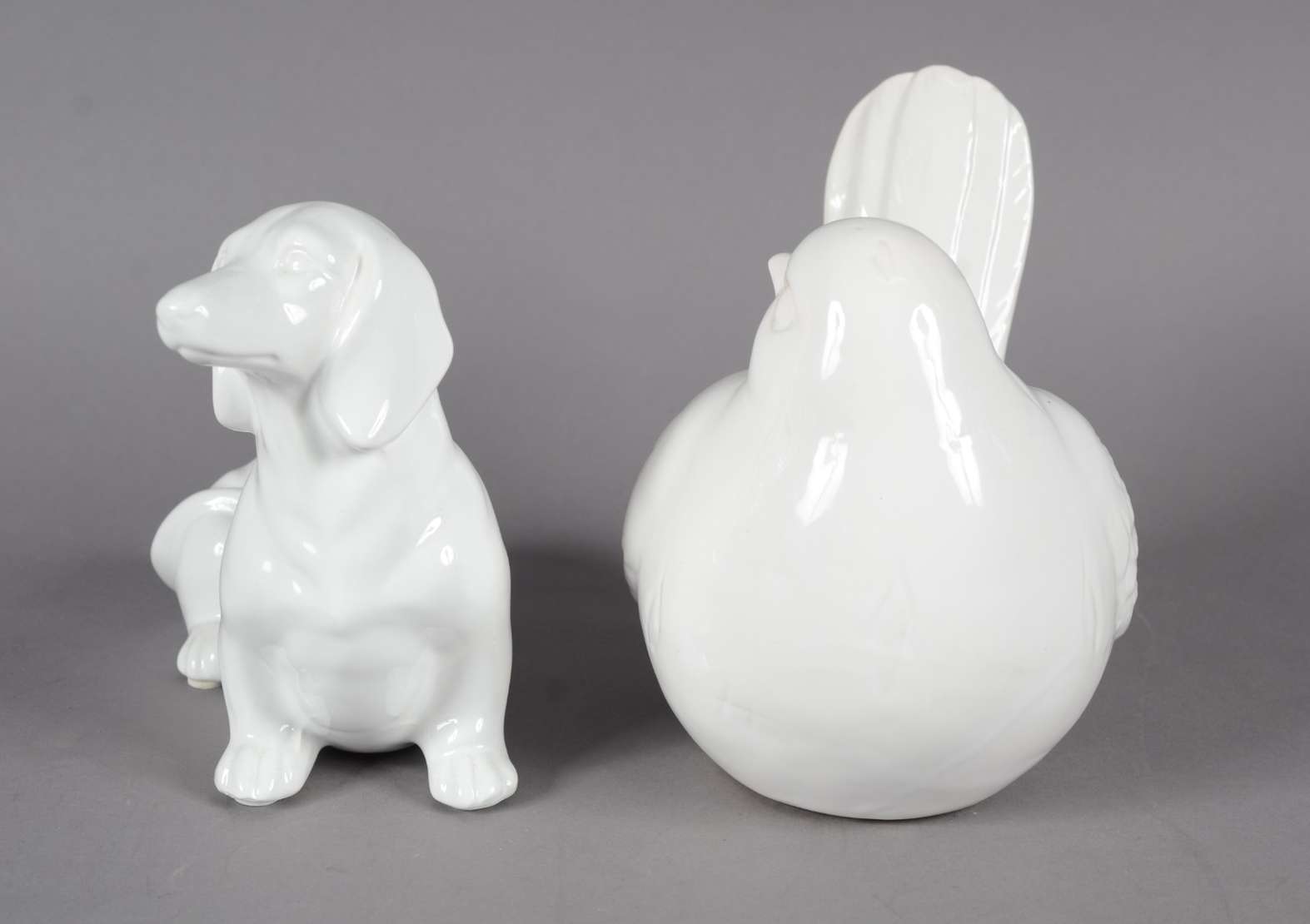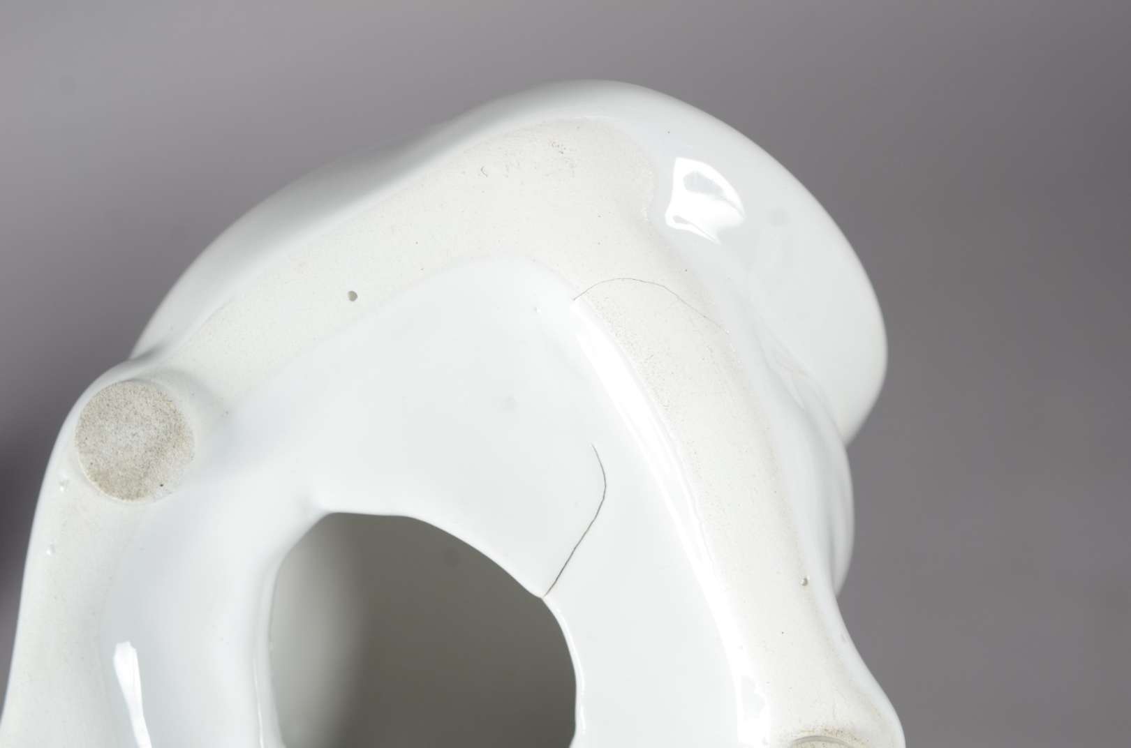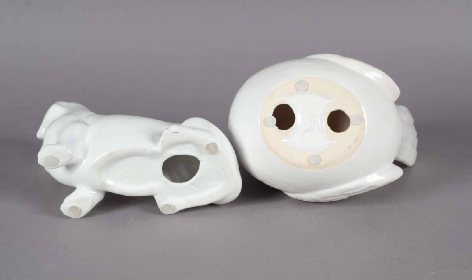 Par de cães de fó de cerâmica policromada. Um deles faltando orelha.