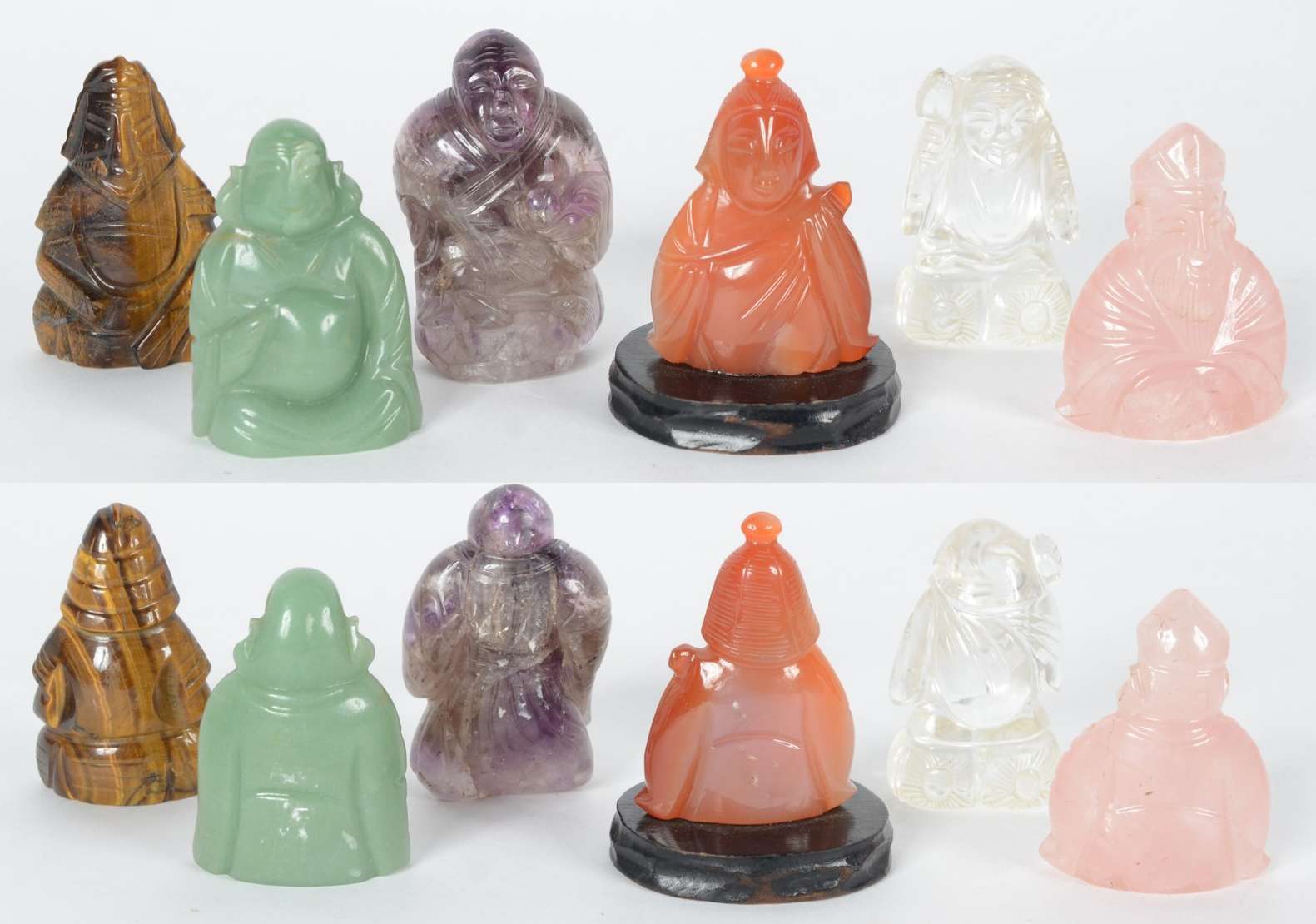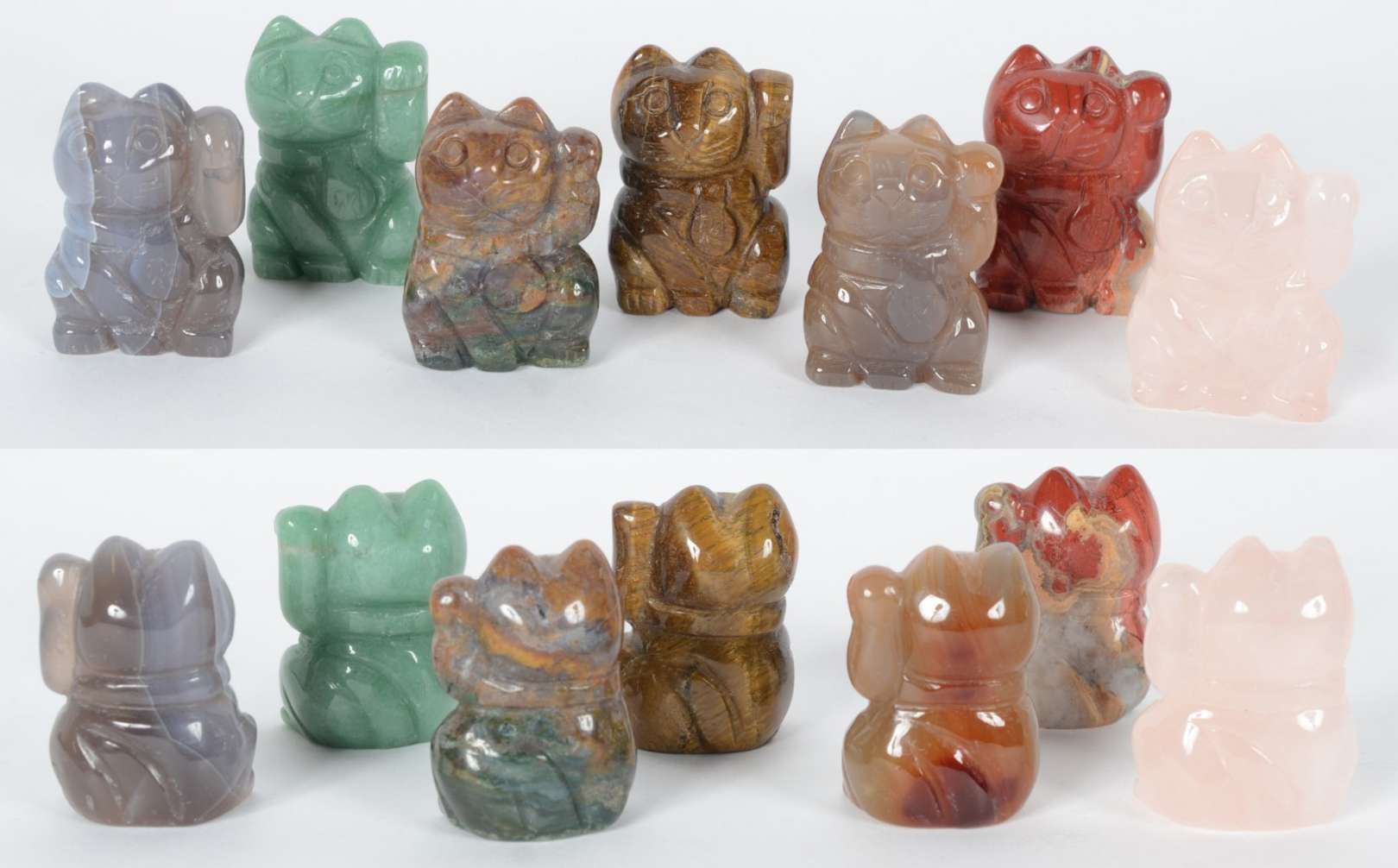 Par de cães de fó de cerâmica policromada. Um deles faltando orelha.