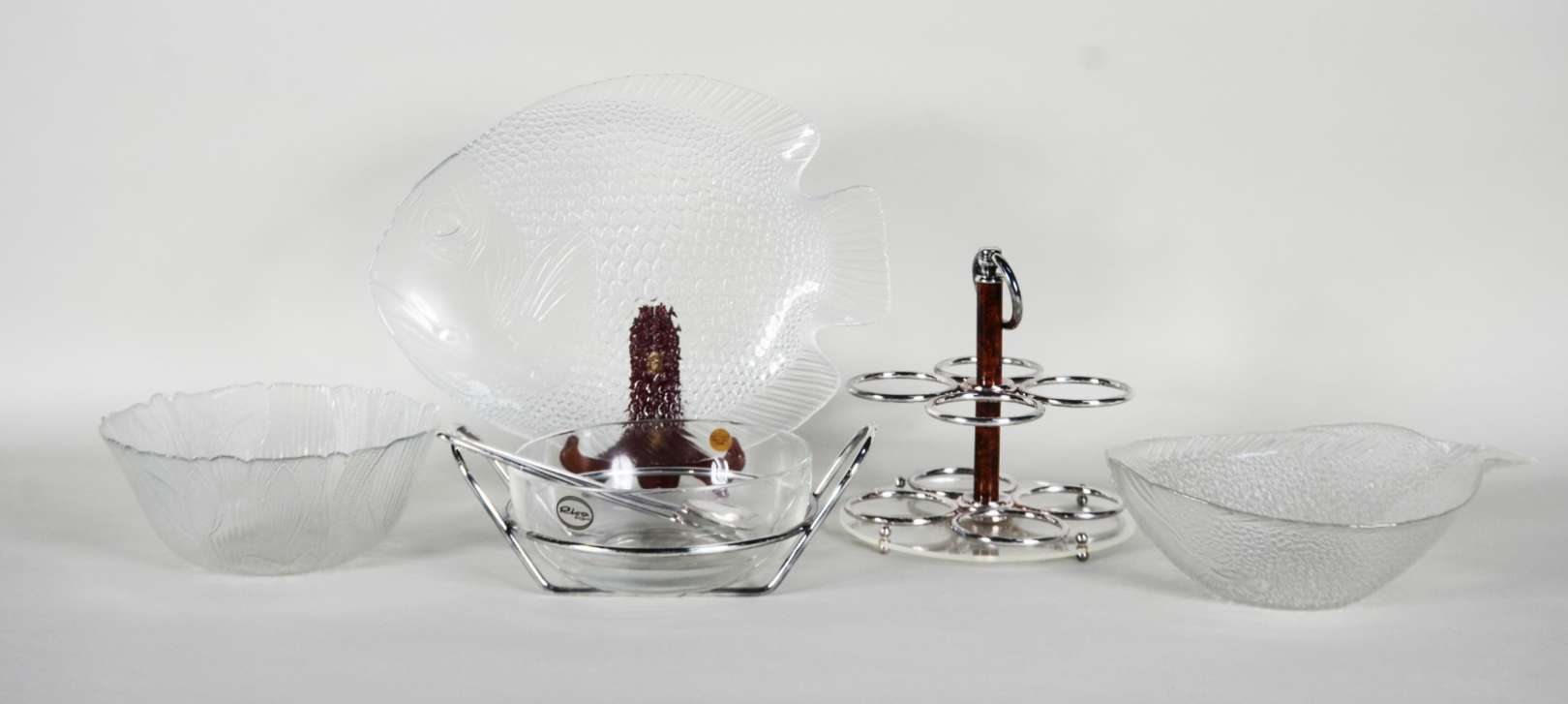 Fruteira com 4 taças de cristal português. Marcado na base.