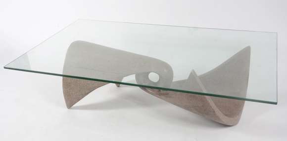Mesa de centro com base de resimarmore, tampo de vidro. Assinada.