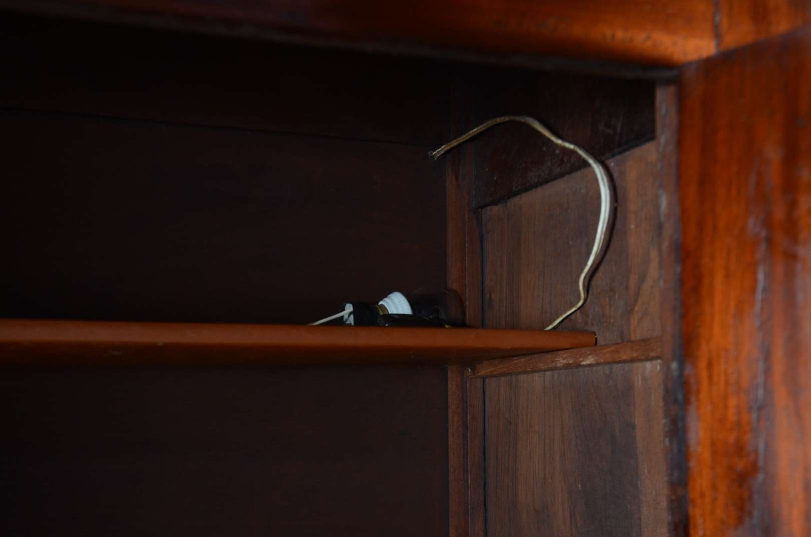 Porta bibelot de parede em madeira ricamente entalhada, duas prateleiras e detalhes vazados.