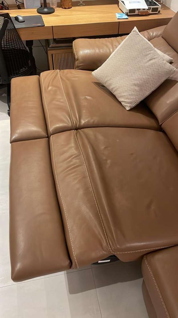 Par de poltronas de madeira nobre, estilo Luis XV, estofamento forrado com tecido na cor bege e tacheados. Desgastes.