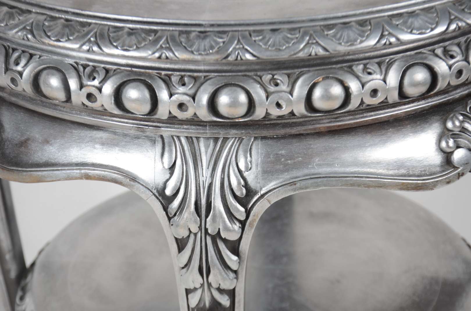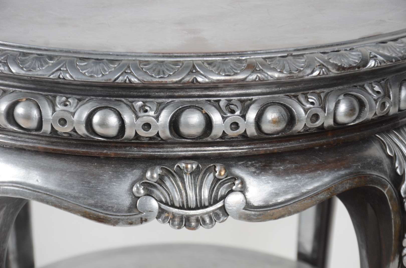 Conjunto de 3 mesas, sendo: uma de centro e par de mesinhas laterais com tampo de mármore.