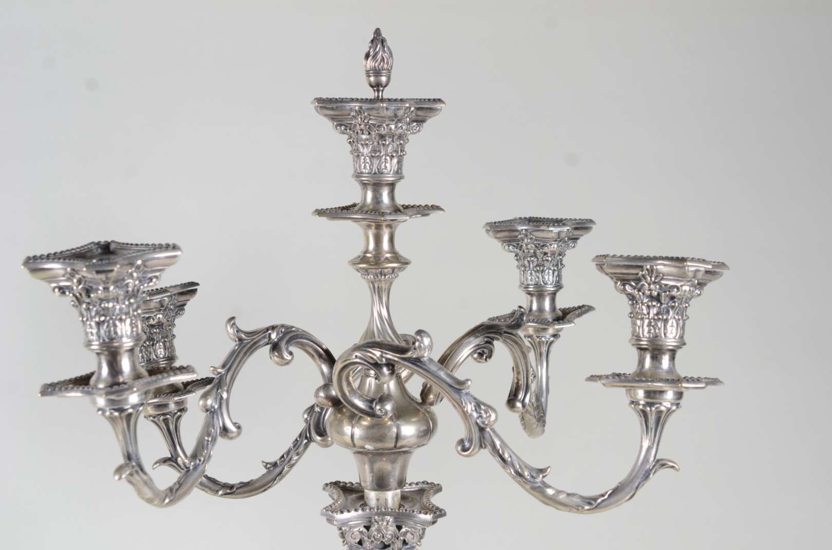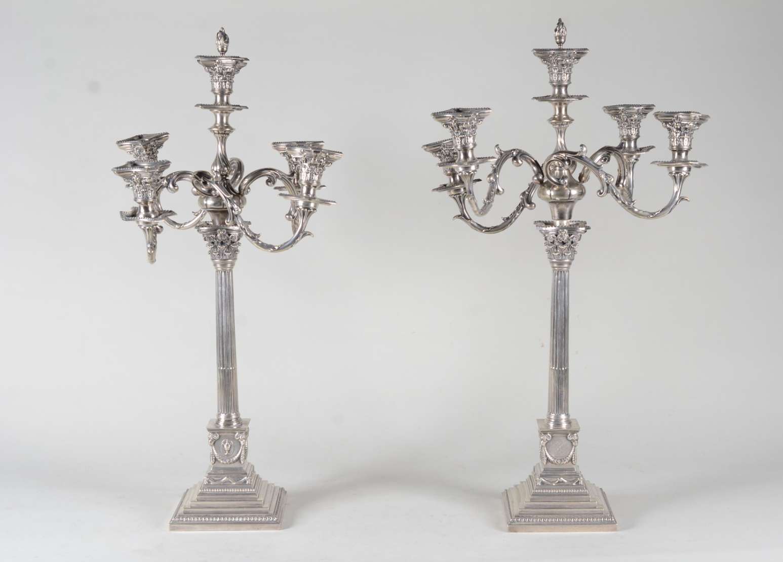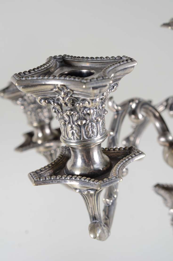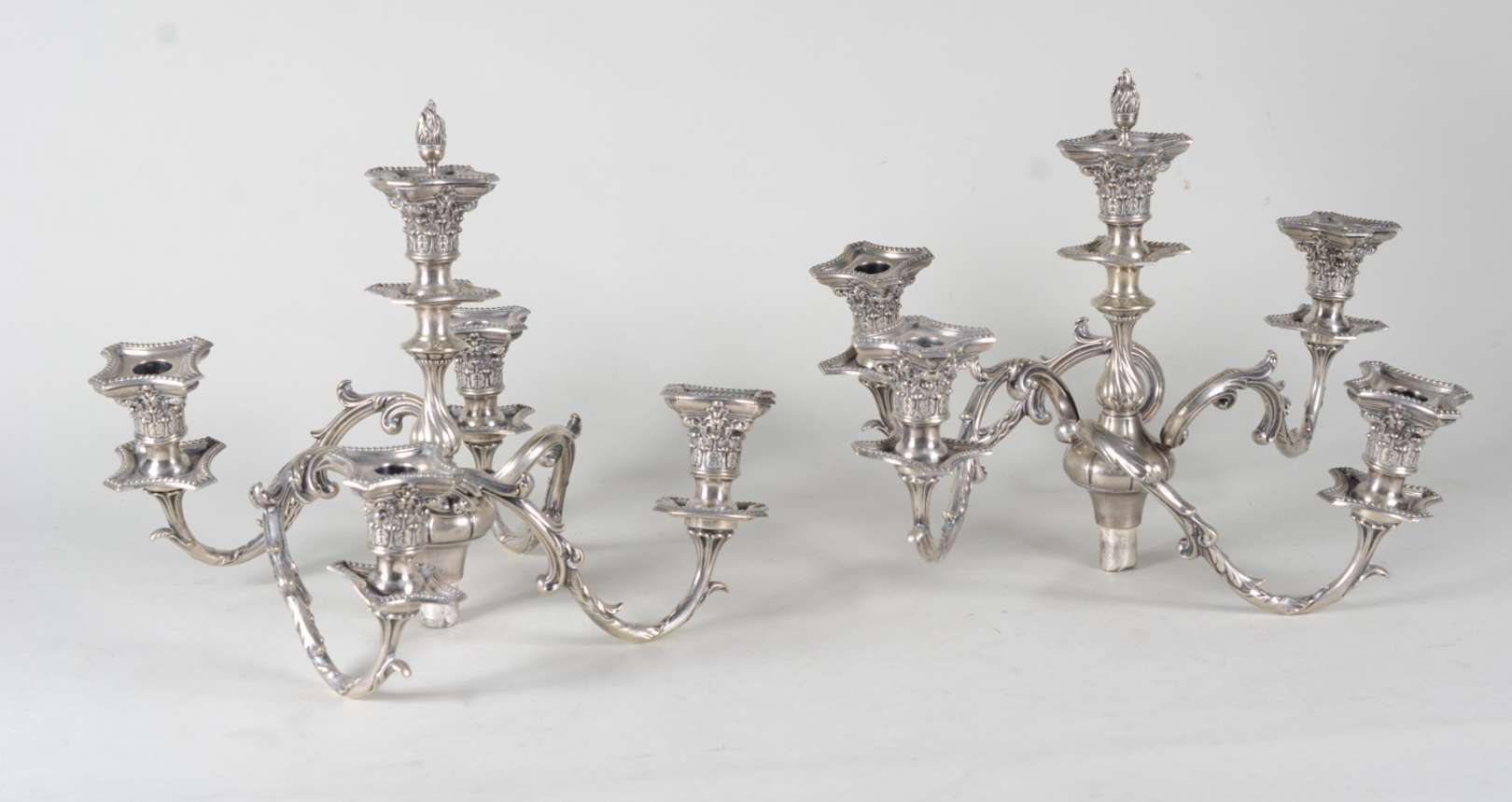 Par de arandelas de metal dourado com guirlandas de folhas e encimadas por taças, para 2 luzes cada, mangas de crista...