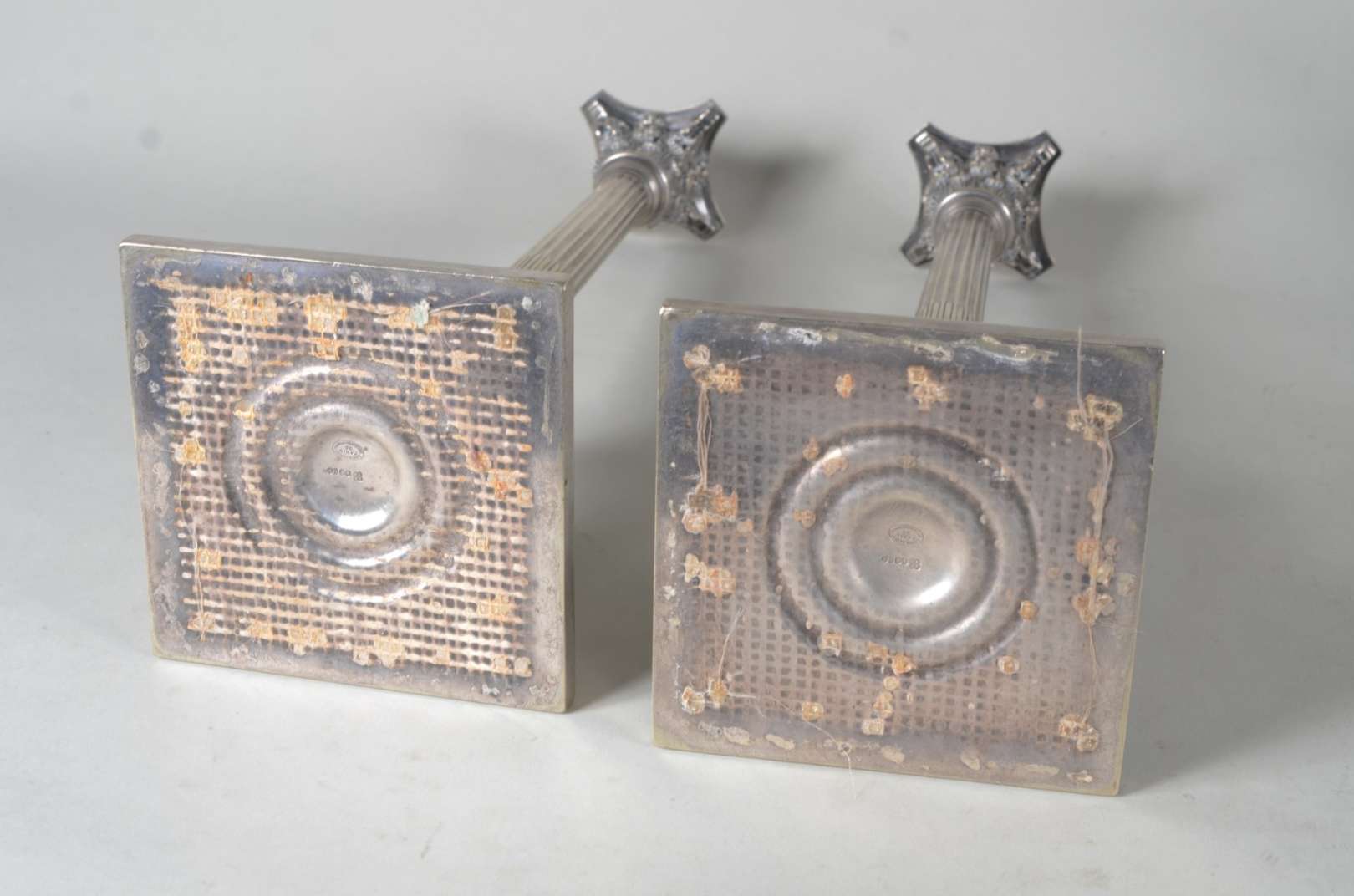 Par de antigos tocheiros de pé de metal patinado com meias cúpulas na cor bege. Metal oxidado com desgastes.