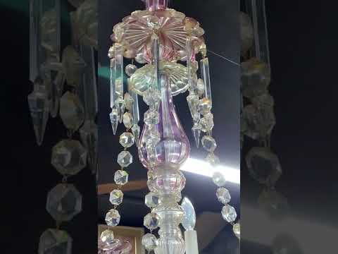 Belíssimo lustre de cristal francês, possivelmente Baccarat, para 5 luzes. Braços em curvas com pingentes lapidados e...